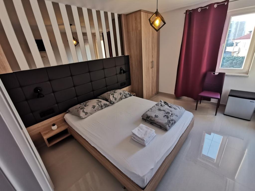 Za ne zaboravni tretman pri posjeti grada Biograda na Moru odsjednite u našim Deluxe Elizabeta sobama. Objekt se nalazi u samom centru grada, te neposredno blizu plaže Dražica. Ove prostrane i vrhunski opremljene sobe zadovoljiti će i najzahtjevnije goste koji iznad svega cijene kvalitetu i eleganciju. Elegantno uređena sobe su opremljene: krevetom dimenzije 160, 00x200, 00 (cm), te prostranom vlastitom kupaonicom. Osim luksuznog kreveta velikih dimenzija, krevet ima i tapecirano kožno uzglavlje modernog dizajna, koje sobi daje poseban ugođaj topline pri boravku. Soba posjeduje još LCD televiziju, garnituru za sjedenje, kao i klimatizacijski uređaj. Svim gostima je omogućen besplatan parking i besplatan Wi-Fi internet. Odsjednite u našim sobama i doživite Biograd na Moru sa užitkom.