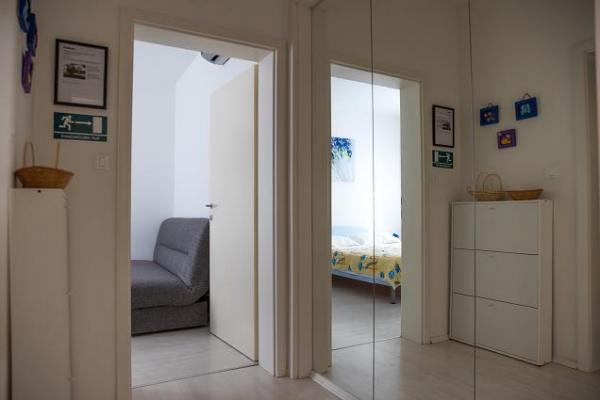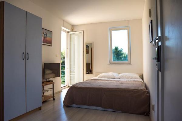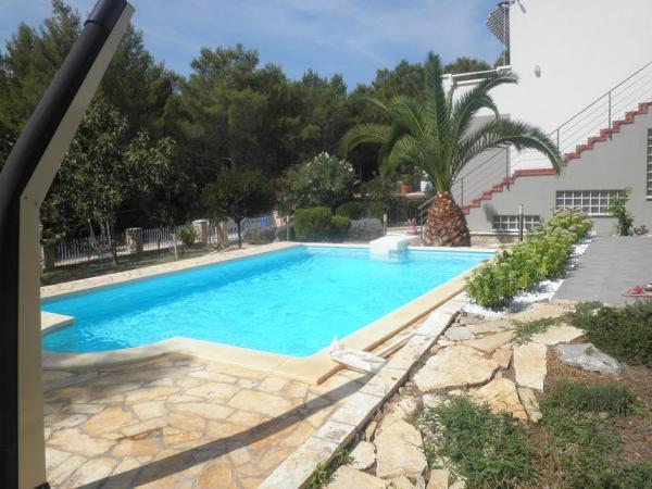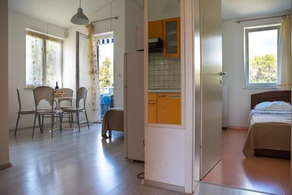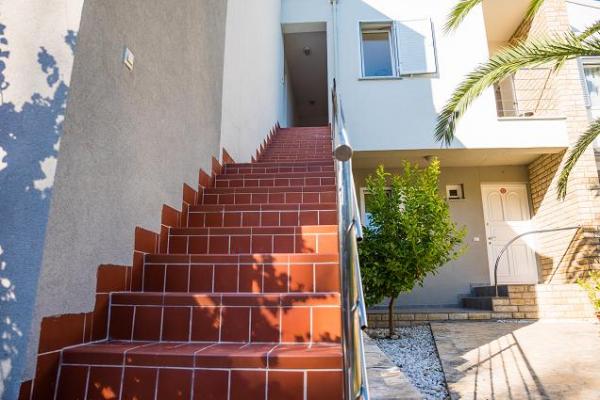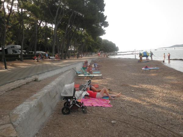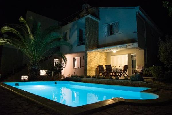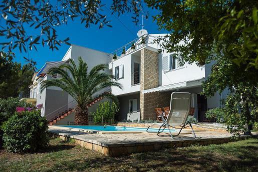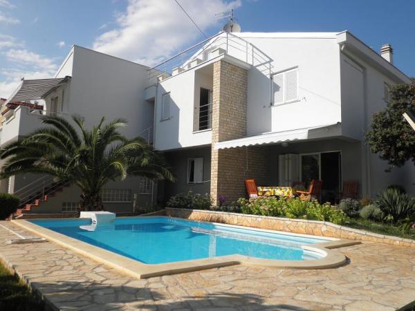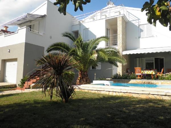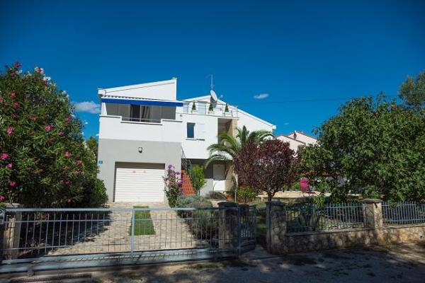 Villa, apartmani, Nada je moderno sagrađen objekt ( 2003 godine ) koji se nalazi u borovoj šumi udaljen od mora 1-2 minute pješačenja. Objekt se nalazi u mirnoj, neprometnoj ulici tzv. sljepa ulica u kojoj se nalaze svega dvije kuće. Od kuće uz obalu se nalazi šetnica kojom se kroz gustu borovu šumu šetnjom dolazi u centar grada. Sve plaže ( pjeskovite, šljunčane, ) su uređene s tuševima te obogaćene mnogim drugim sadržajima ( tobogan, skuteri, pedaline...) i nalaze se u borovoj šumi. Oko 3 km. od apartmana nalazi se NOVOOTVORENI FUN PARK MIRNOVEC ( zabavni park ) koji se prostire na 45. 000 m 2. Tri apartmana se nalaze na prvom katu dok se jedan apartman nalazi u prizemlju. Kuća je samostojeća te se u dvorištu mogu spremiti bicikli, skuteri itd. U dvorištu je roštilj za goste. Ispred kuće je osigurano parkiralište za automobile.