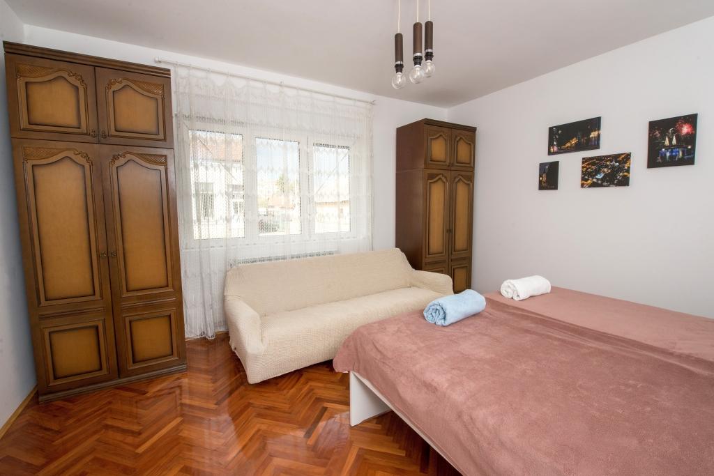 Prenoćite u prostranom apartmanu (75 m2) potpuno preuređenom 2019. godine. Zabavite se uz besplatan brzi WiFi i LCD TV. Okrijepite se u potpuno opremljenoj kuhinji. Odmorite se u bračnom ili razdvojenim krevetima. Parkirajte bez naplate u ogradenom dvorištu dovoljno velikom i za dostavna vozila.