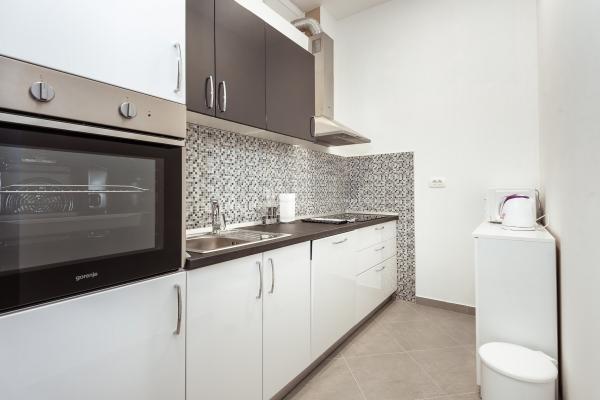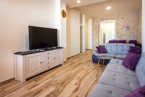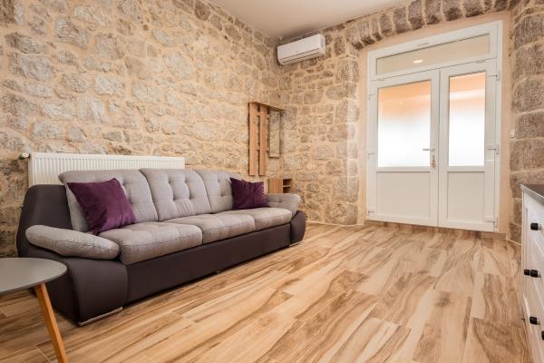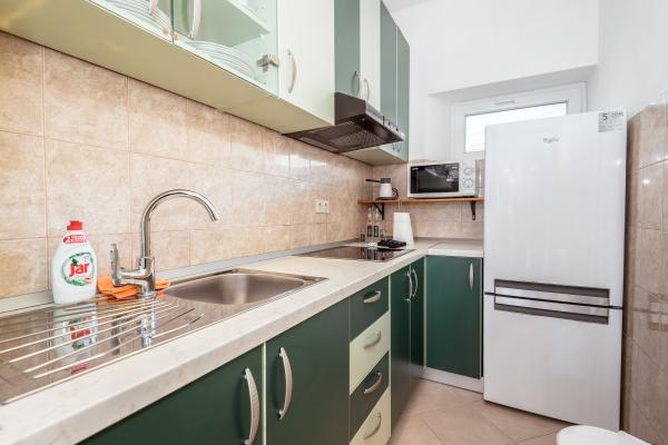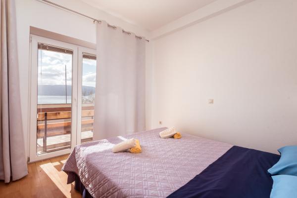 Kompletno opremljen, novi apartman u mirnom mjestu, smješten prvi red do mora. 2 minute hoda do plaže, trgovine, restorana, s predivnim pogledom na more i velikom terasom s vratima, pogodno za malu djecu