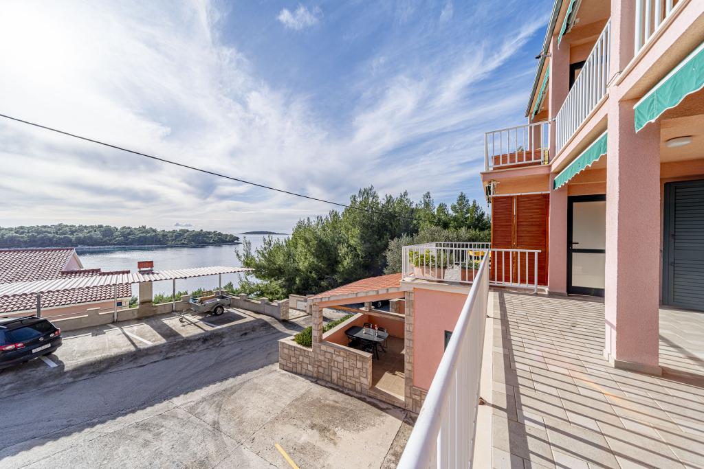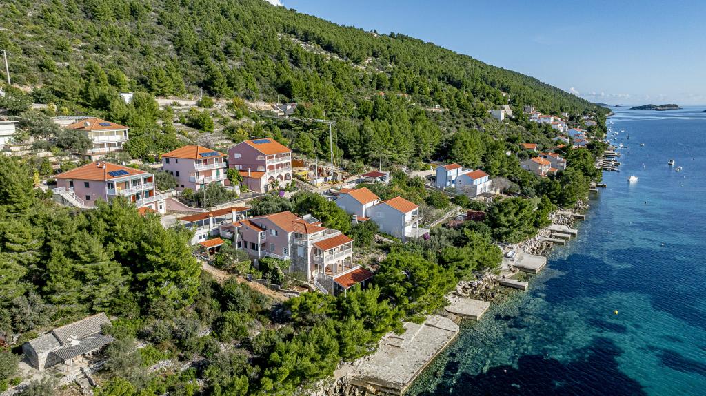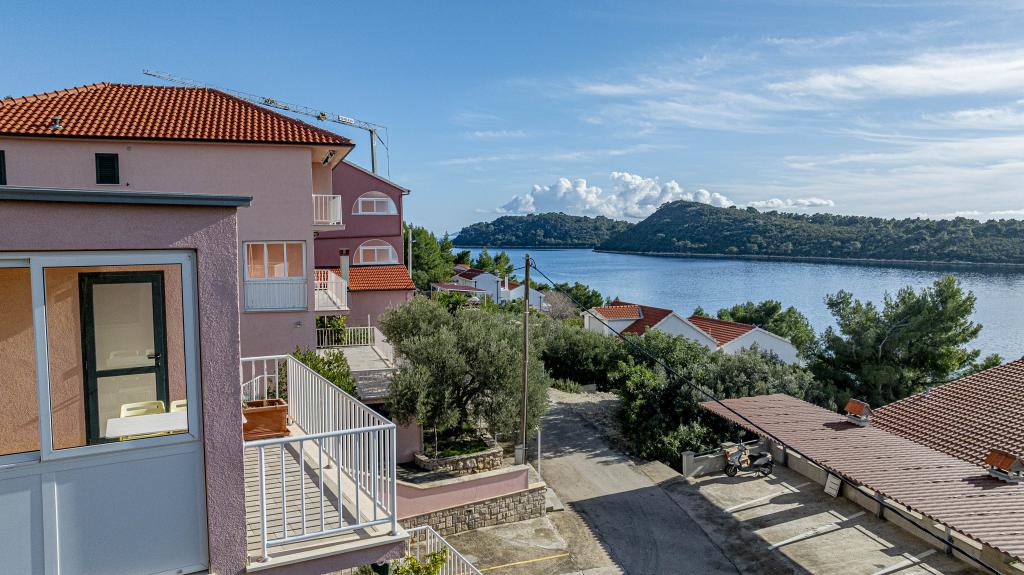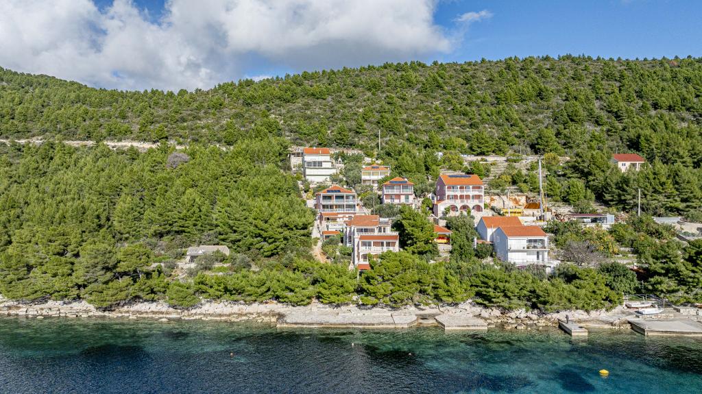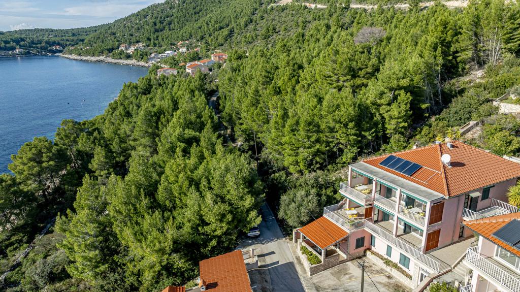 ️APARTMANI GORA️️ nalaze se u mjestu Karbuni na otoku Korčula. Udaljeni su cca 14min.vožnje autom od mjesta Vela Luka te cca 12min. Od mjesta Blato.Nalaze se drugi red od mora cca 30m ,na lokaciji koja pruža mir i tišinu, prekrasan pogled sa prostranih terasa na susjedne otočiće i more,sve što vam je potrebno da bi se osjećali odmorno i ugodno te ponesete sa sobom naljepše uspomene.U ponudi je 5 apartmana ,površine cca 55m2 sa terasama površine cca 15-17m2 ; 4APP. 4+1 1APP 6 U stražnjem dijelu kuće imate mogućnost korištenja roštilja (u dogovoru s ostalim gostima ). Za sve ostale detalje i informacije stojimo vam na raspolaganju Bit će nam izuzetno zadovoljstvo ugostiti vas i postati dio vaših lijepih uspomena️