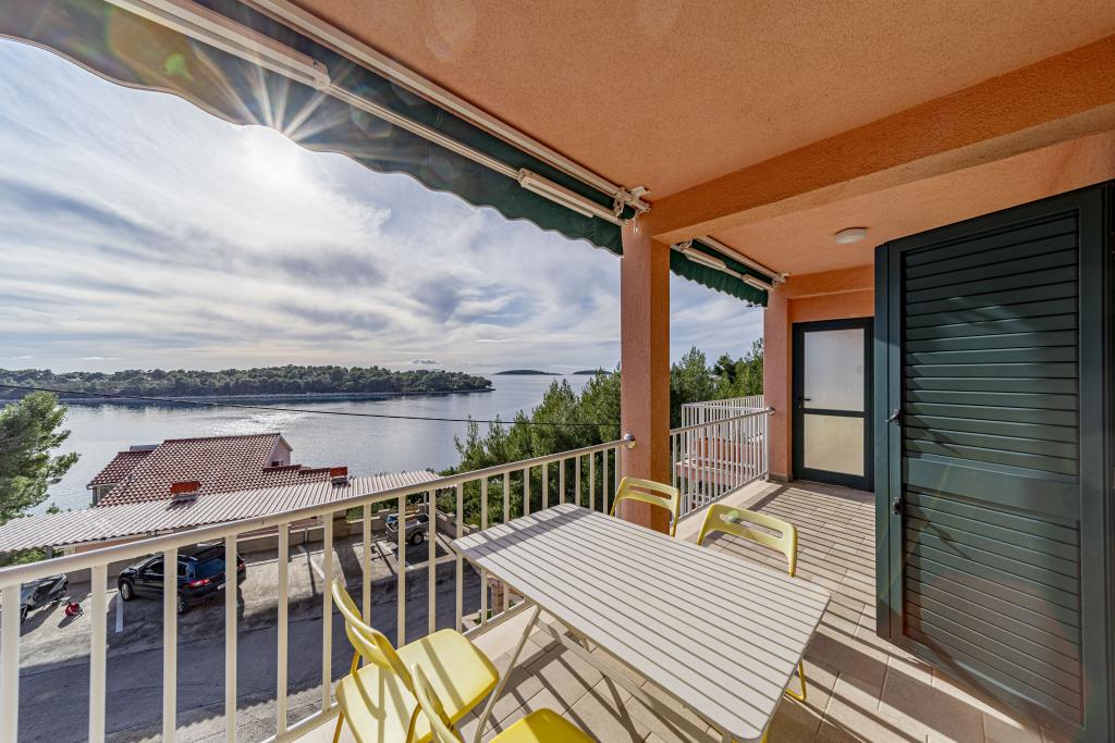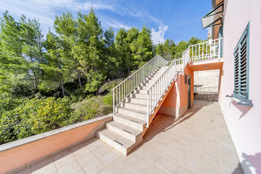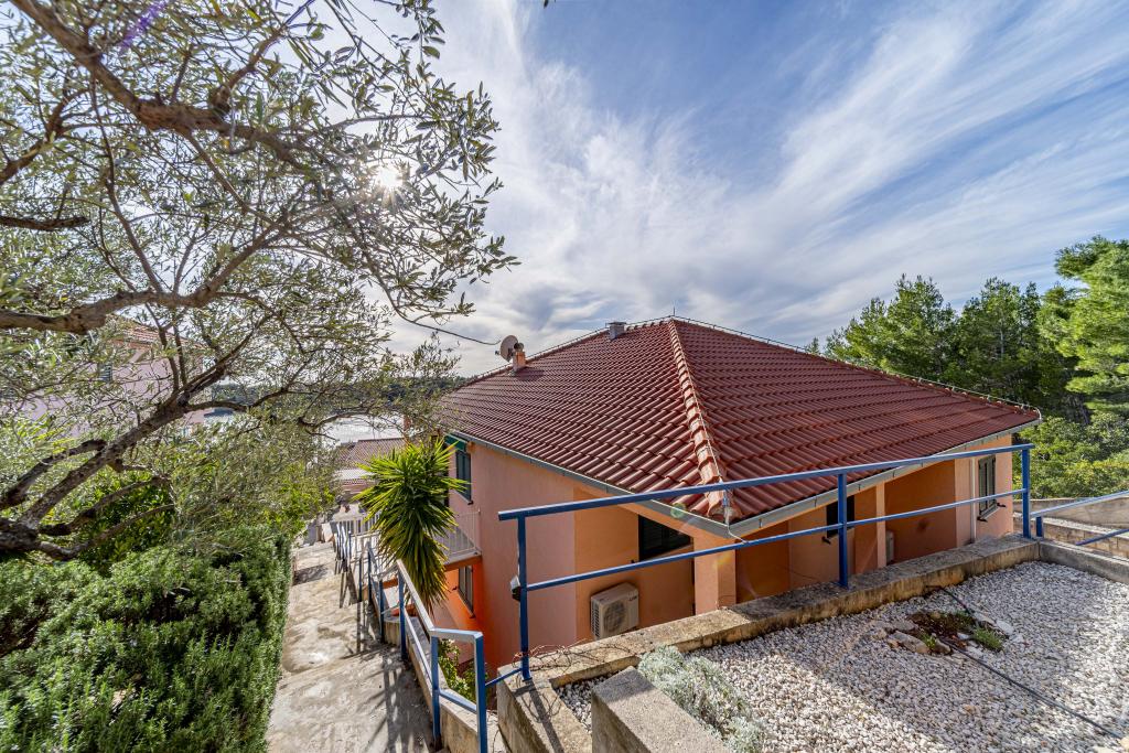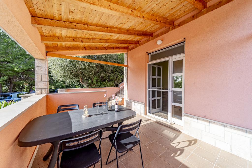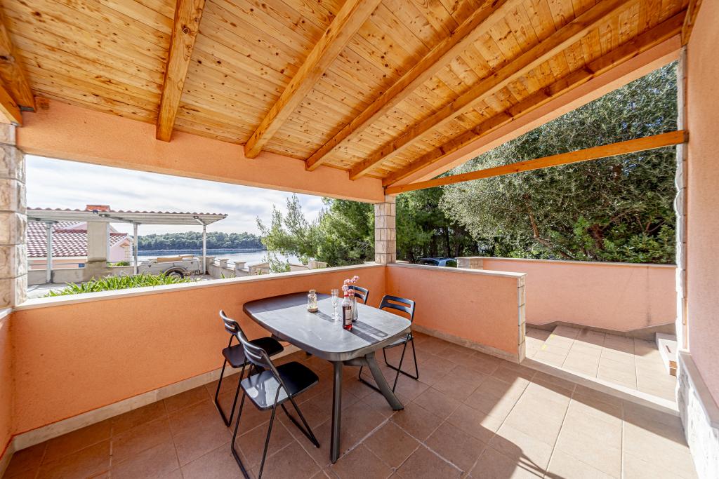 ️APARTMANI GORA️️ nalaze se u mjestu Karbuni na otoku Korčula. Udaljeni su cca 14min.vožnje autom od mjesta Vela Luka te cca 12min. Od mjesta Blato.Nalaze se drugi red od mora cca 30m ,na lokaciji koja pruža mir i tišinu, prekrasan pogled sa prostranih terasa na susjedne otočiće i more,sve što vam je potrebno da bi se osjećali odmorno i ugodno te ponesete sa sobom naljepše uspomene.U ponudi je 5 apartmana ,površine cca 55m2 sa terasama površine cca 15-17m2 ; 4APP. 4+1 1APP 6 U stražnjem dijelu kuće imate mogućnost korištenja roštilja (u dogovoru s ostalim gostima ). Za sve ostale detalje i informacije stojimo vam na raspolaganju Bit će nam izuzetno zadovoljstvo ugostiti vas i postati dio vaših lijepih uspomena️
