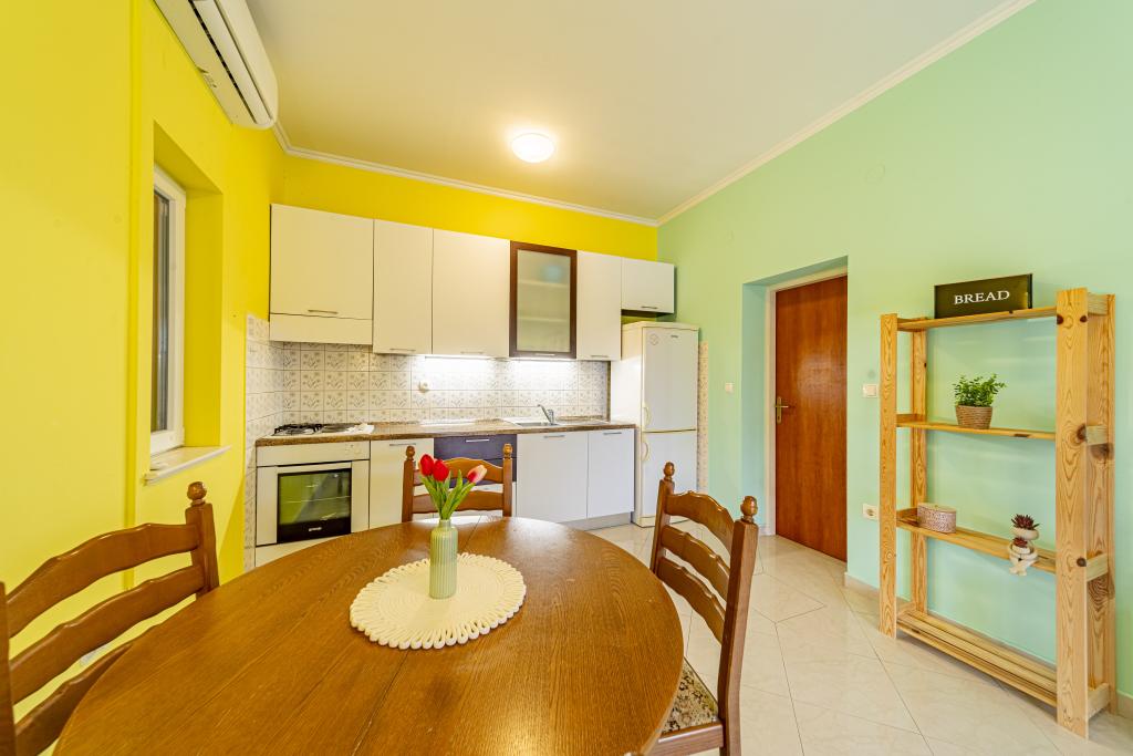 Pročitaj više Smještajne jediniceZa potvrdu rezervacije potrebno je uplatiti 30% od ukupne cijene smještaja. Besplatno otkazivanje 30 dana prije dolaska. Check in iza 14h ,a check out do 10 h .Za kućne ljubimce se plaća dodatno ,5 e/ dan po ljubimcu. Roštilj koji je u sklopu apartmana te isto tako perilica rublja se koristi u dogovoru s ostalim gostima, dakle zajedničko je korištenje. Dječji pomoćni krevetić na rasklapanje daje se na zahtjev. Pušenje unutar objekta tj.prostorija zabranjenoj.