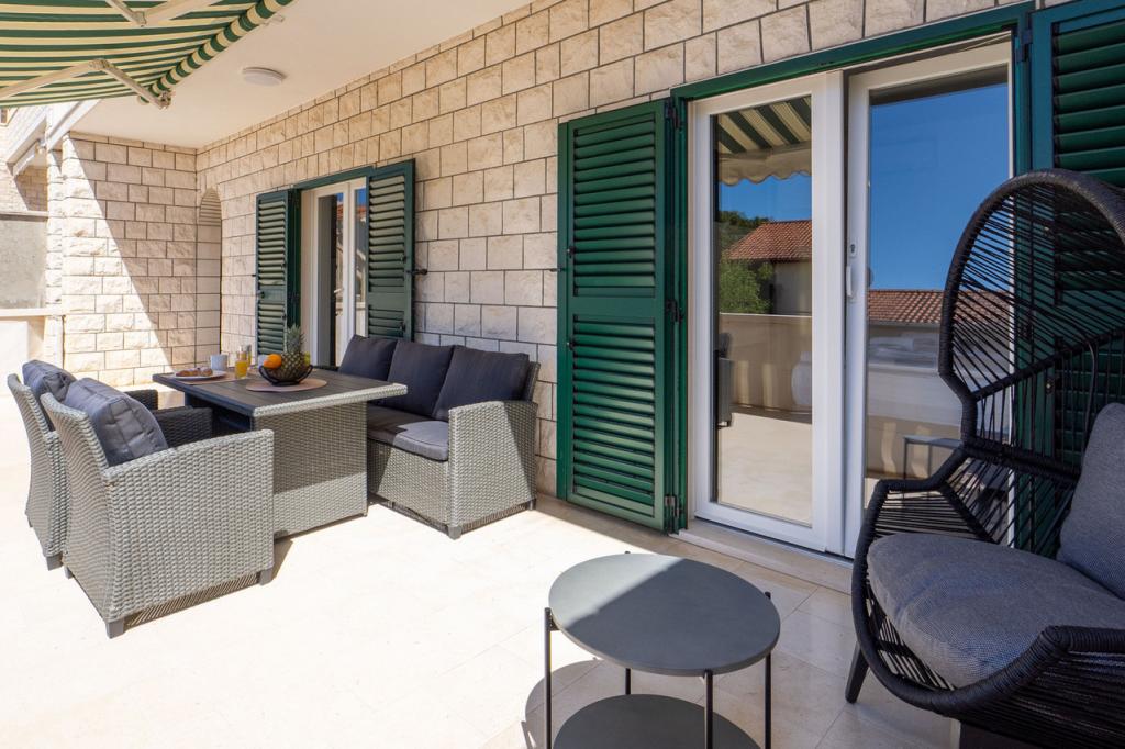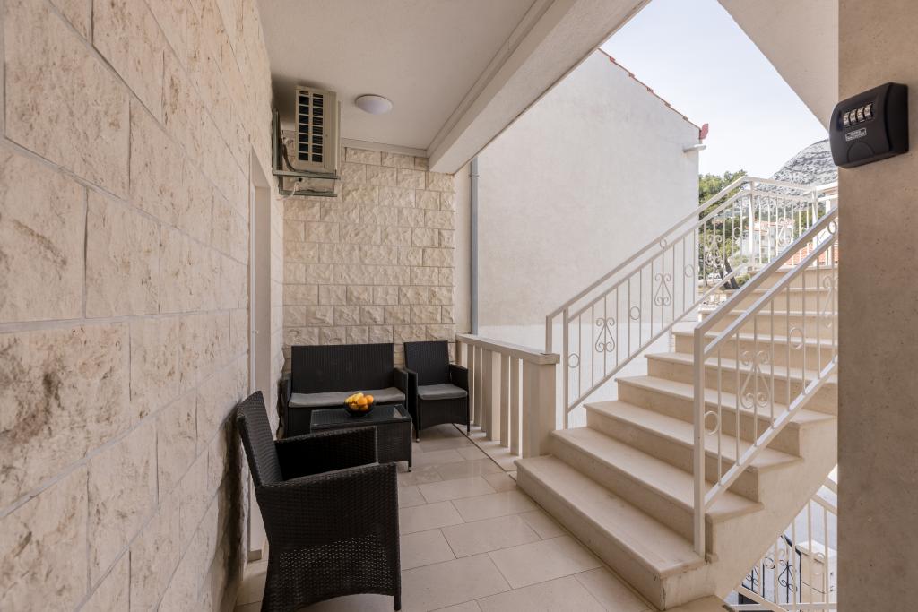 Apartmani Jelavić se nalaze u zapadnom dijelu mjesta Bol, nešto iznad početka promenade prema plaži “Zlatni rat” ( Šetnica ). Kuća je udaljena oko 150m od mora i prvih plaža. Od samog centra Bola je udaljena nekolikol minuta hoda tako da naši gosti vrlo jednostavno i brzo mogu doći do namirnica ali i usluga pošte, banke, turističkih agencija, policije, hitne pomoći i sl. Nedaleko od kuće se nalazi i većina bolskih restorana, caffe barova i noćnih klubova. Iako od naše kuće do plaže “Zlatni rat” (cca. 2000m) vodi predivna šetnica uz more, iz centra mjesta, za ovu jedinstveno lijepu i svjetski poznatu plažu, prometuje i redovna brodska linija. Naša kuća je građena u klasičnom dalmatinskom stilu, sa pročeljima u bijelom bračkom kamenu, prostrfanim terasama za boravak izvan apartmana sa ogradama od kovine i kamenim kolumnama. 20 godina iskustva u turističkoj djelatnosti i stalno unapređivanje usluge stavlja naše apartmane u vrh ponude privatnog smještaja mjesta Bol na otoku Braču.