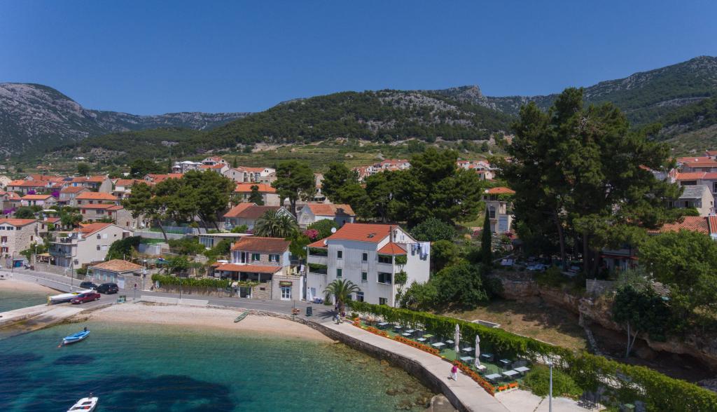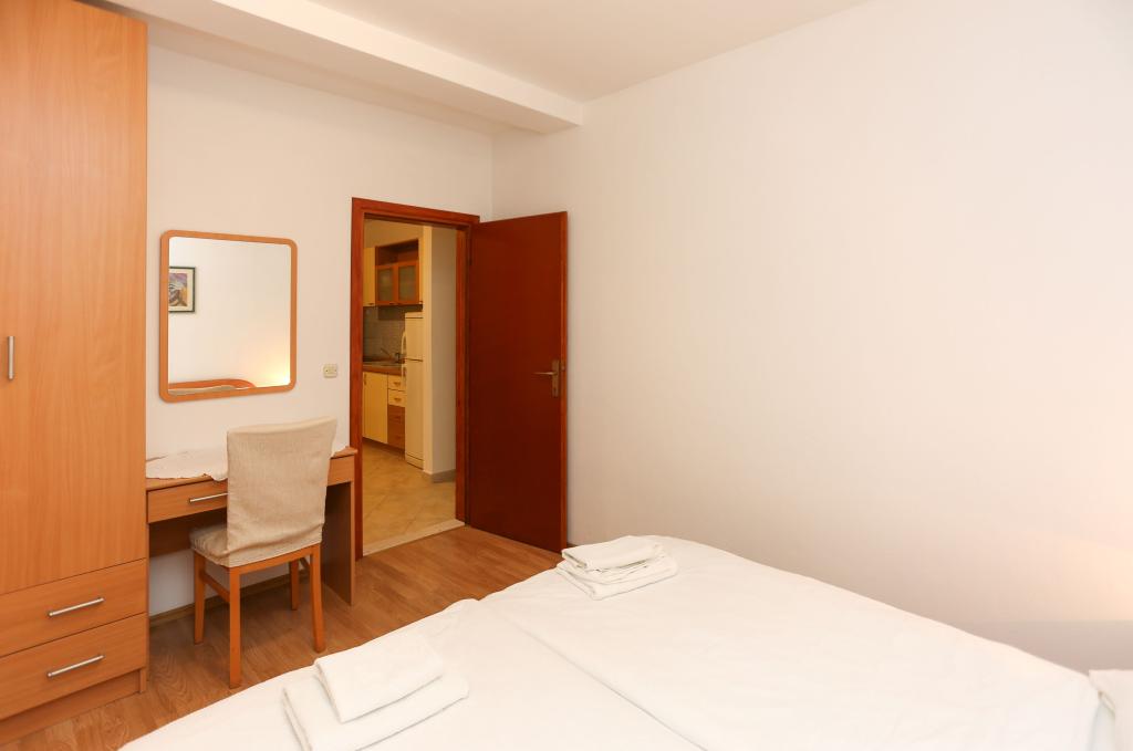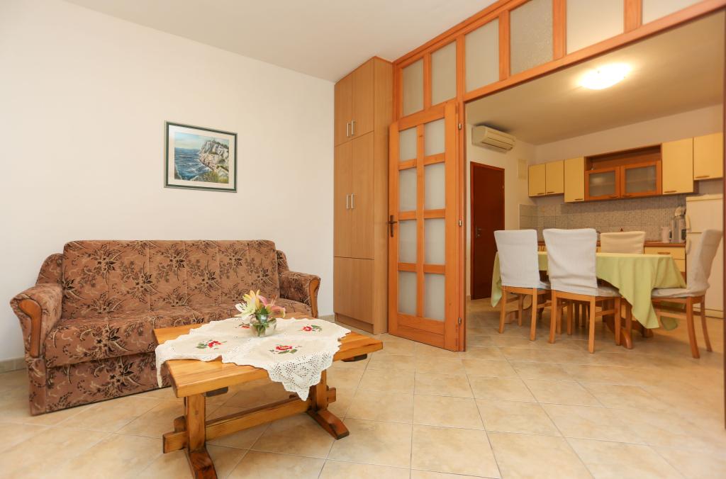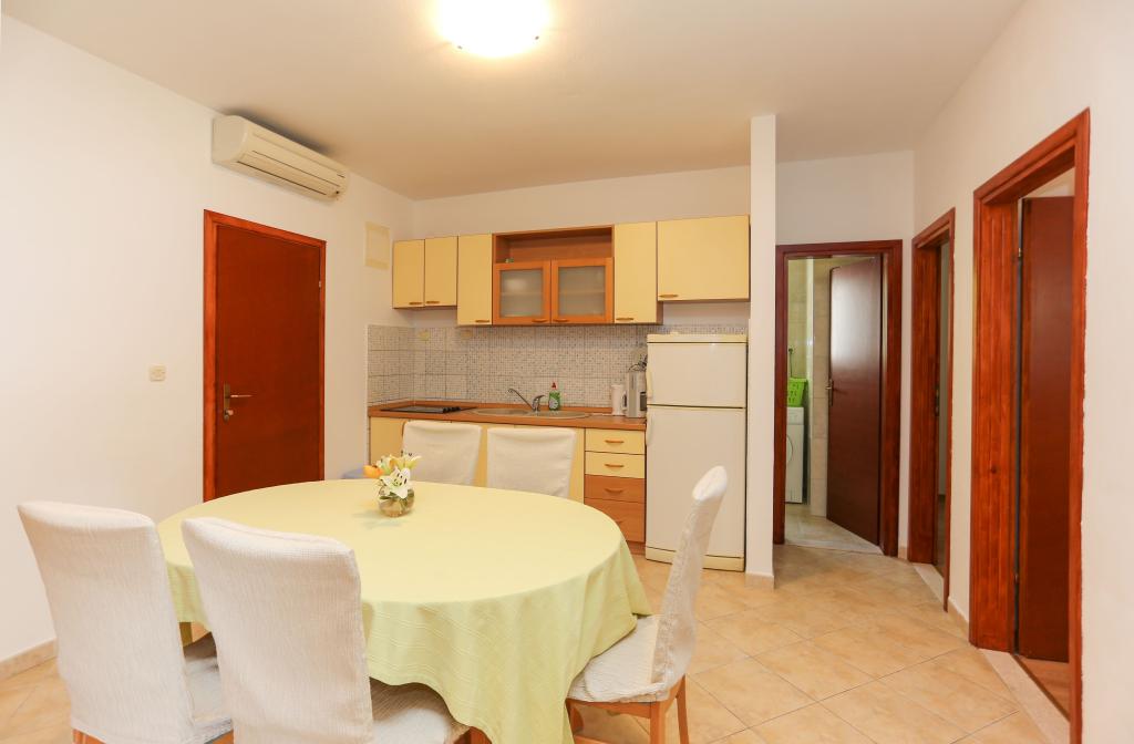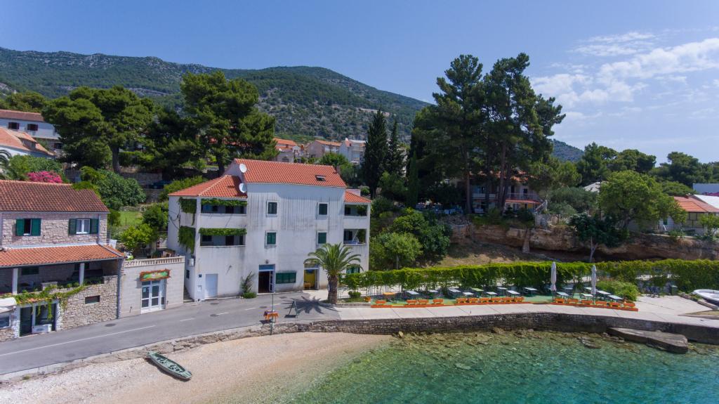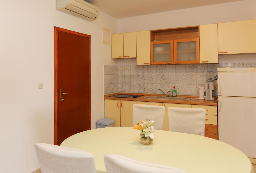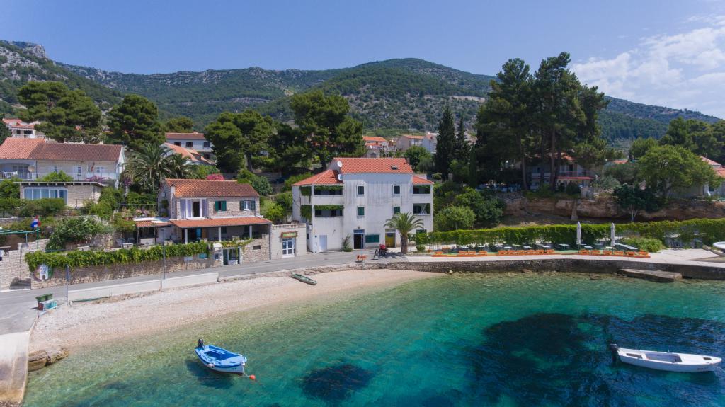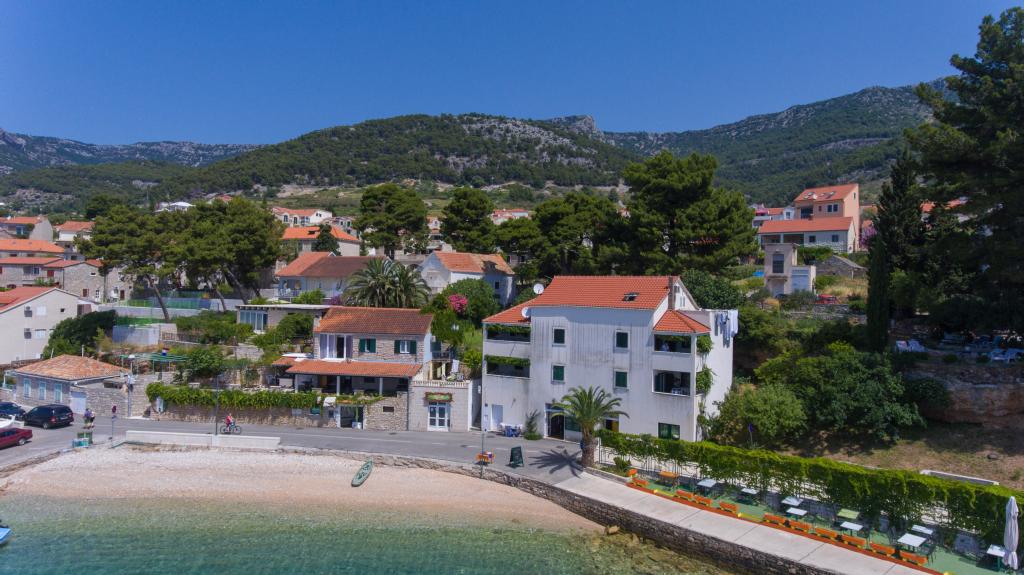 Apartmani Laguna nalaze se na pola puta između centra mjesta i Dominikanskog samostana. Svaki apartman ima sobu sa bračnim krevetom, sobu sa dva kreveta za jednu osobu, kupatilo, kuhinju i veliku terasu sa pogledom na more. Centar mjesta je udaljen 150 metara. U krugu od 100 metara imate 3 a-la-cart restorana sa dalmatinskom kuhinjom i dvije picerije. Restoran u prizemlju je zatvoren zbog galame pa je najbliži a-la-cart udaljen 50 metara od objekta.