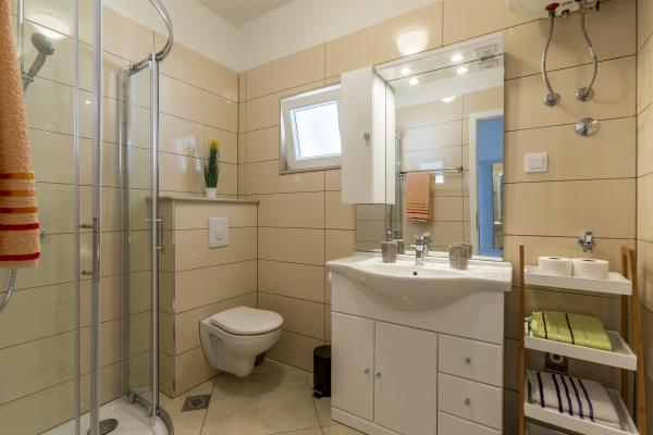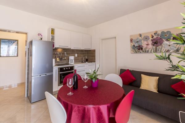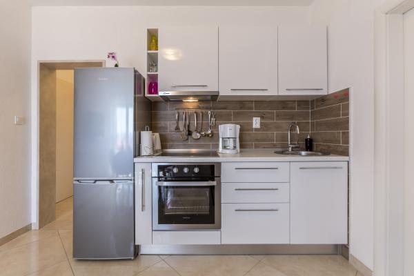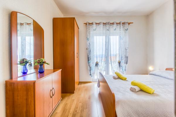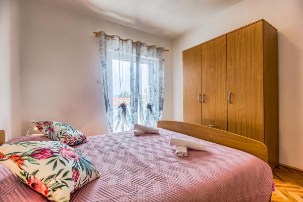 Apartmani Petra - svaki apartman s pogledom na more, 2 min udaljen od plaže, 5 min od centra mjesta. Apartmani raspolažu s 2 spavaće sobe, kupatilom, kuhinjom, dnevnom prostorijom, balkonom s pogledom na more. Posebna terasa za grill i kutom za sjedenje. Parking dostupan.