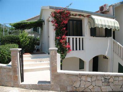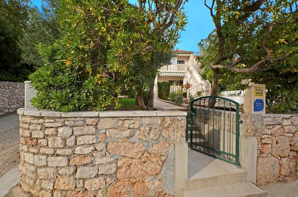 Dobrodošli u Villu Fontanu! Kuća se nalazi 150m od mora i nekoliko minuta hoda od centra Bola. Sunčani apartman Delfin, površine 80 m², sastoji se od dva apartmana sa dvije spavaće sobe, dvije kupaonice, dvije kuhinje, blagovaonicom i dnevnim boravkom i terasom s prekrasnim pogledom na vrt s fontanom i očaravajući pogled na kristalno čisto more.