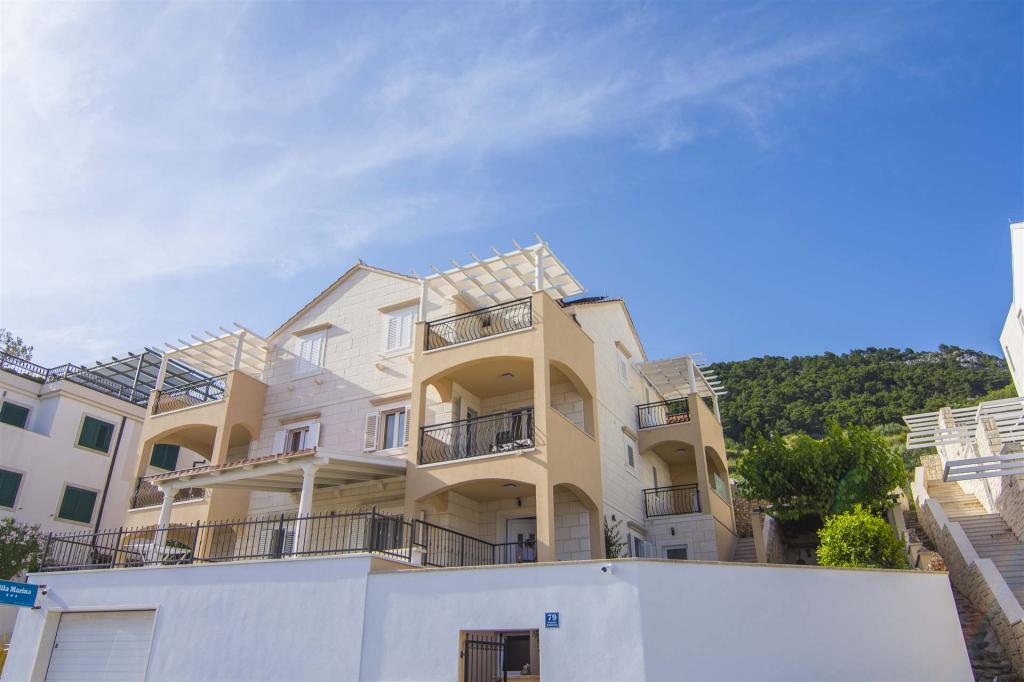 Villa Marina nalazi se u mirnijem dijelu Bola na otoku Braču, nekoliko minuta hoda od centra mjesta i mora. Objekt nudi više apartmana, svi su uredni, funkcionalni i opremljeni za ugodan boravak tijekom ljeta. Svaki apartman ima vlastitu kuhinju, kupaonicu, klima uređaj i balkon ili terasu. Većina ima pogled na more ili mjesto. Gostima je na raspolaganju privatni parking u sklopu objekta. Do centra Bola, restorana, trgovina i rive dolazi se laganom šetnjom, a poznata plaža Zlatni rat udaljena je oko 15-20 minuta hoda ili nekoliko minuta vožnje. Objekt je pogodan za parove, obitelji i manje grupe koje traže jednostavan i ugodan smještaj blizu svih sadržaja, ali bez buke.
