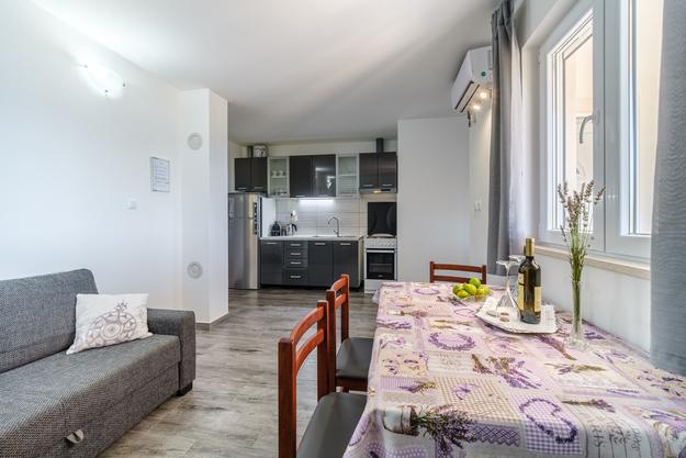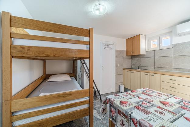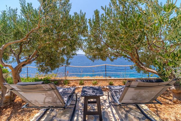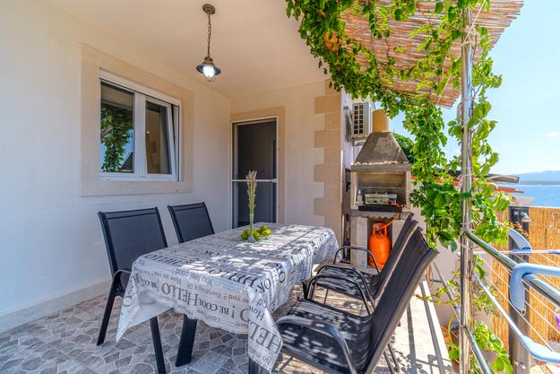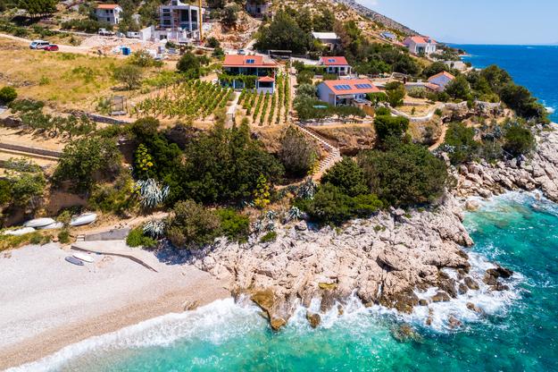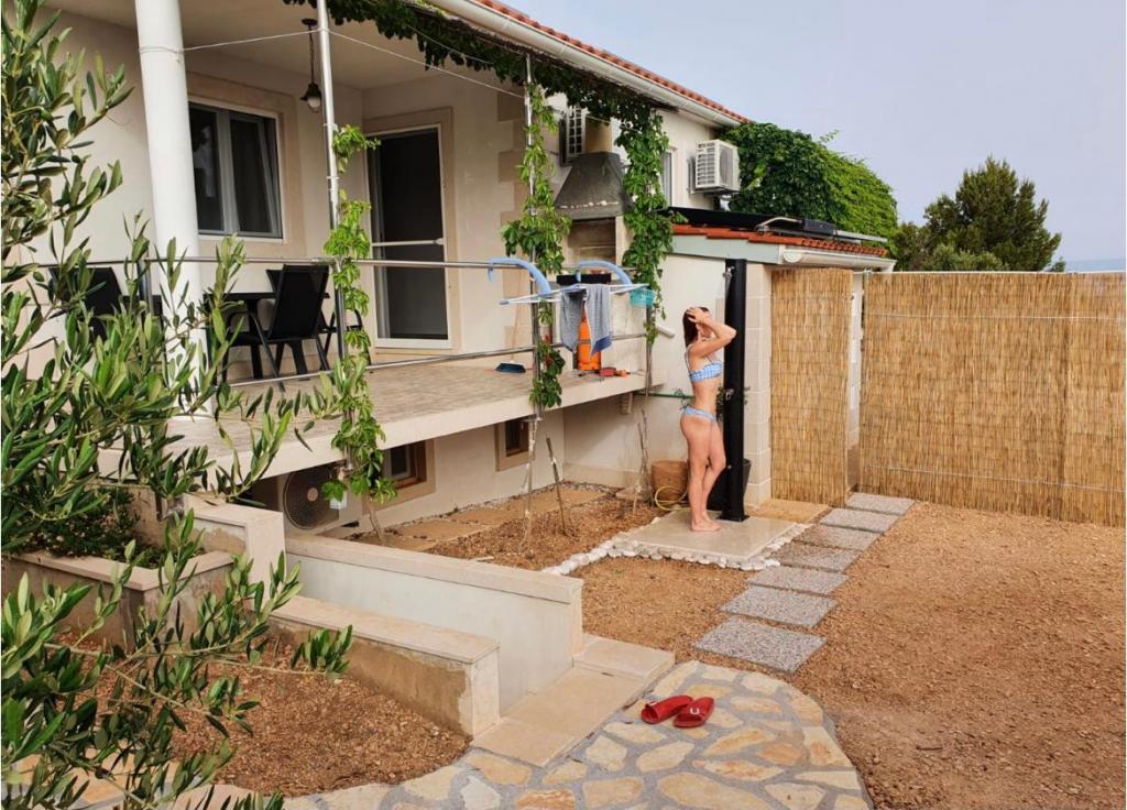 Jedinstven apartman. Udaljen 20 metara od mora. Privatni parking (2auta) i privatni ulaz na put do plaže koja je udaljena 50 metara. Apartman je jedini sa klima uređajom u ovoj uvali, te gosti mogu koristiti beplatan WiFi, 2 e-bike-a i 2 SUP-a- Na terasi se nalazi i vanjski tuš sa pogledom na more. Ovaj oglas obuhvača 2 odvojena apartmana - uključena u cijenu. Prvi je veći apartman 40m2 sa dvije spavaće sobe (1 dvosobni krevet, 1 jednosobni krevet i kauč na izvalačenje za jednu odraslu ili dvoje mlađe djece) kuhinja, kupaona i dnevni boravak. Drugi je studio u suterenu (oko 10 m2) sa krevetom na kat, kupaonom i pomoćnim ležajem. Apartmani su novo izgrađeni 2018. godine. Apartmani su potpuno samoodrživi i napajaju se putem solarnih panela. Apartman je sljubljen uz još jedan jednaki apartman kojega naša obitelji koristi i koji se ne iznajmljuje. Vi ćete biti jedini gosti i imati ćete zaseban ulaz na plažu. Plaža Vela Farske je malo posječena i jedan od rijetkih bisera otoka Brača.
