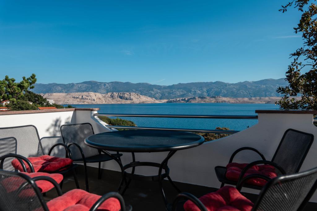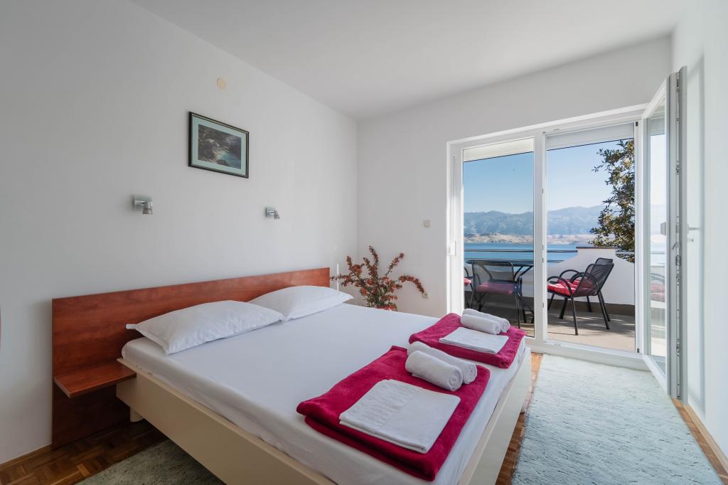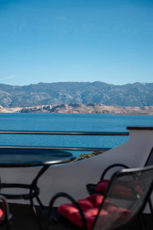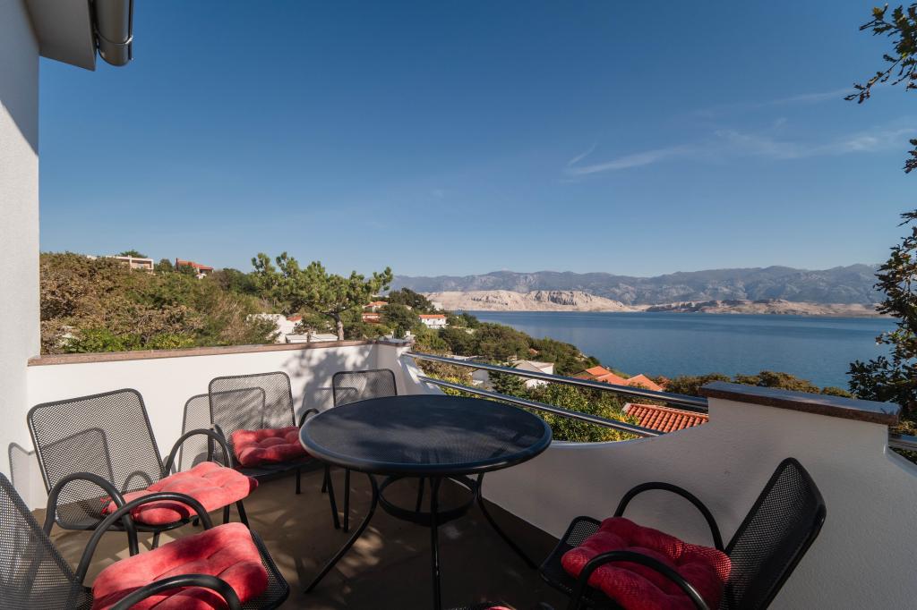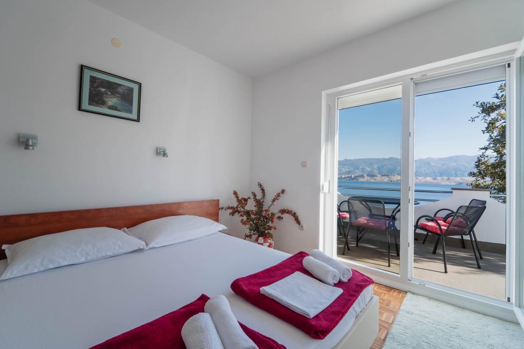 Turistička pristojba je uključena u cijenu. Šaljemo pismenu potvrdu rezervacije (voucher)Oba apartmana smo iznajmili s grupom prijatelja i djece. Vrlo je mirna, osamljena, zelena lokacija s prekrasnim pogledom, oba apartmana su pažljivo i dobro opremljena, a domaćini su vrlo ljubazni. Gornji apartman je sunčaniji i sastoji se od tri dvokrevetne spavaće sobe (jedna je spojena s blagovaonicom), kuhinje i kupaonice. Jedna spavaća soba ima dodatni kauč na razvlačenje. Apartman ima dvije klima jedinice i sunčanu terasu koja pruža dobrodošao hlad u popodnevnim satima. Donji apartman sastoji se od tri spavaće sobe (prva je velika dvokrevetna spavaća soba, druga je mala dvokrevetna spavaća soba, a treća je mala spavaća soba za 1-1,5 osoba), dobro opremljene kuhinje s blagovaonicom i dva dodatna kreveta te kupaonice. Ovaj apartman također ima dvije klima jedinice. Apartman ima zasjenjenu terasu i pristup malom zelenom vrtu s ležaljkama. Velika prednost oba apartmana su mreže protiv komaraca na svim prozorima, pristup perilici rublja, vanjski tuš, dobro funkcionalan Wi-Fi i privatno parkiralište. Pristup plaži je prilično strm spust od tri minute preko udobne, popločane staze i stepenica. Plaža je prekrasna uvala, pogodna i za djecu i za jake plivače, a zanimljiva je i za ljubitelje ronjenja. Trgovina prehrambenih proizvoda, restorani i druge atrakcije i usluge nalaze se nekoliko kilometara dalje u šarmantnom gradu Pagu. Vlasnici apartmana su nevjerojatno ljubazni i gostoljubivi, uvijek na licu mjesta i brinu se o svemu. Dobro govore engleski i brzo odgovaraju na upite. Smještaj nam se jako sviđa i preporučujemo ga.