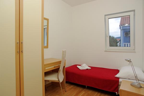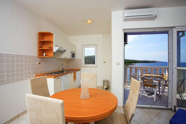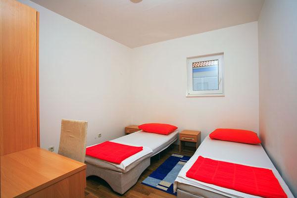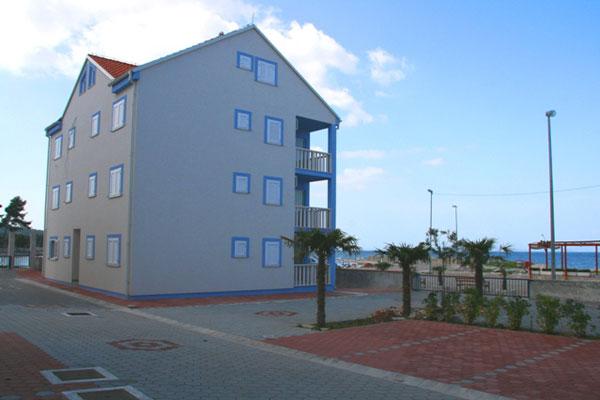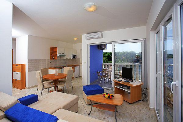 Apartmani su veličine od 55-62 m². 17 apartmana je 4+2, a 5 je 3+2. Svaki apartman se sastoji od dvije spavaće sobe, dnevne sobe, kuhinje, kupaonice te balkona s pogledom na more. Da bi Vaš boravak učinili što lagodnijim, sve apartmane smo opremili najsuvremenijom opremom, pa svaki sadrži perilicu za suđe, mikrovalnu pećnicu, hladnjak, klima uređaj, telefon, te lcd televizor i satelitsku antenu. Također, uz apartman, gosti imaju svoje parkirno mjesto na privatnom čuvanom parkingu.