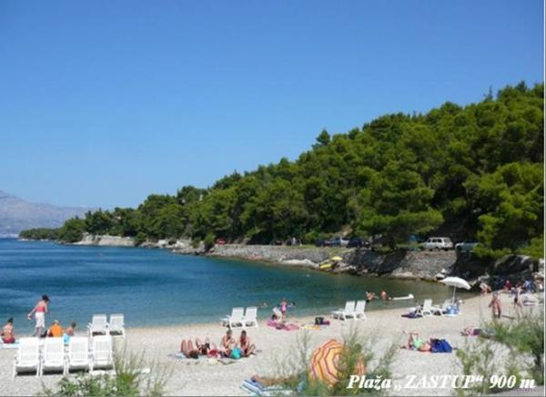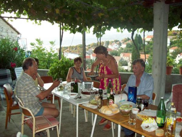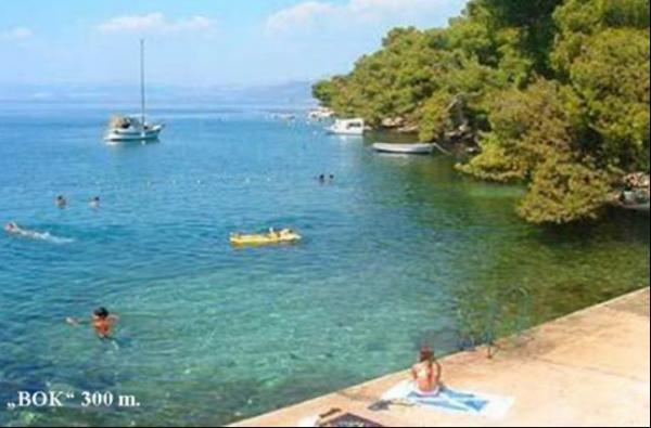 Nudimo: APARTMAN - 1/6 2 Tri sobni apartman do 8 osoba sa dva sanitarna čvora, kuhinjom, d. boravkom i velikim dvorištem, djelom natkrivenim, pogodno za blagovaonu I boravak, odakle je lijep pogled na uvalu I brački kanal. ; --- 2 x SOBA 1/2 sa Tuš/WC, upotreba kuhinje; --- 4 x AP / STUDIO sa kupatilom / wc, i kuhinjskom lođom. Veliki natkriveni prostor koristi kao dnevni boravak. Parking u dvorištu. Dvorište je puno mediteranskog raslinja. Potpuno opremljen roštilj se nalazi u vrtu. --- Udaljenost: More 200 metara. Plaža 300 metara. Supermarket 200 metara. Restoran 100 – 200 metara.