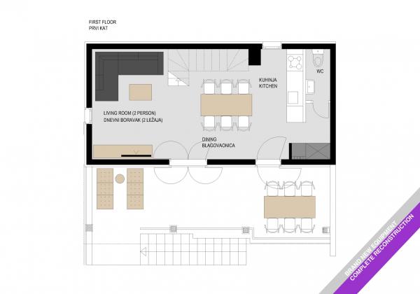 Idilična ljetna kuća je smještena između centra i glavne plaže uvale Milne (5 minuta hoda do jednog i drugog). Cijela kuća se iznajmljuje u komadu kao jedan apartman što garantira potpunu privatnost našim gostima. Kuća je okružena vlastitim i susjednim vrtovima koji stvaraju specifičan osjećaj prirodne izoliranosti s direktnim pogledom na more ( 20 m udaljeno ). Uz obalu se nalazi i glavna pristupna cesta sa koje se pritupna kući stepenicama i pješačkim putem (duljine 35 m). Na istoj obali je moguće besplatno parkirati automobil. Kuća se trenutno rekonstruira i na ljeto započinje s primanjem prvih gostiju. Sadrži kompletno novu opremu (namješta, madraci, tehnika, kuhinja, sanitarije), nove klima jedinice u svakoj prostoriji, podno grijanje, satelitsku televiziju, besplatan wifi, walk-in tuš i još mnogo toga. Kuća sadrži dnevni prostor u kojem se nalazi pomoćni ležaj za dvije osobe i spavaći prostor sa dvije sobe i komfornom kupaonicom (raspored spavanja 2 3 2).