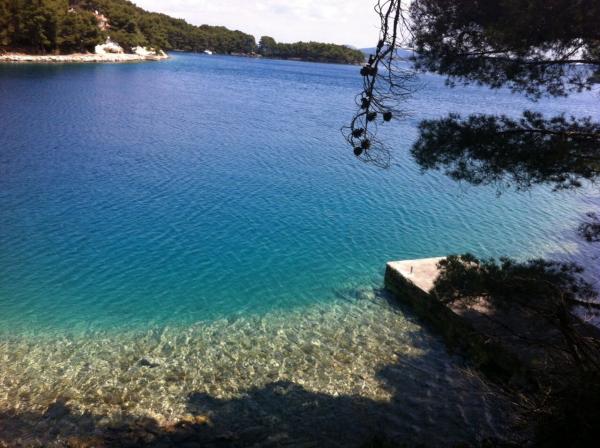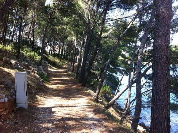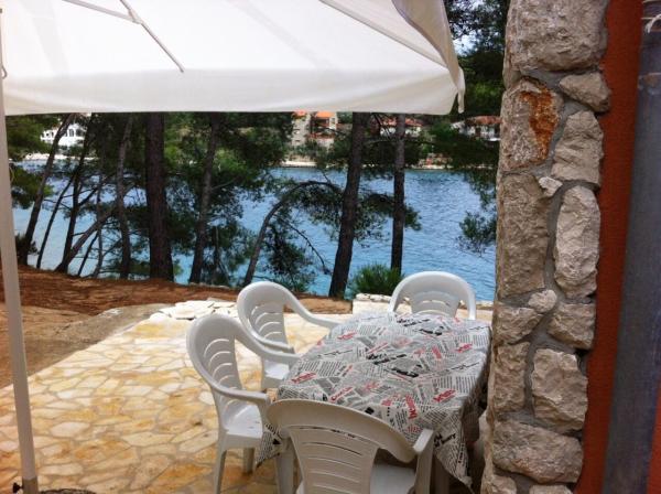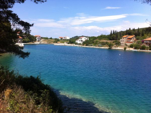 Kompletno namješten apartman u mirnoj uvali, borova šuma, smješten 7 metara od mora, plaža neposredno ispred apartmana, velika kamena teras i grill. Objekt se nalazi 2 minute hoda od trgovine, pošte i restorana