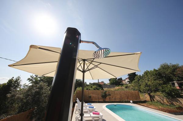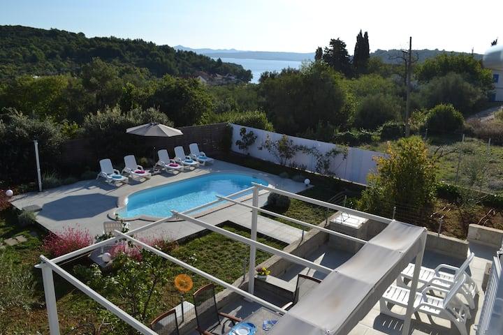Bili smo osam (4 odrasle osobe i 4 djece) dva tjedna u kućici, i uživali u boravku, jako puno. Kuća, apsolutno odgovara opisu, i još bolje, vrlo lijepo korisni stanodavac, odakle smo primili dobrodošlicu nakon dolaska s pićem. Kuća je u potpunosti renovirana i ima idiličan vrt, bazen i terasu s koje se pruža prekrasan pogled na more. Vrtni namještaj, ležaljka, i ograđeni roštilj su dostupni. Oprema kuće je super, sve je dostupno, čak i perilica rublja, i perilice posuđa su dostupni za upotrebu. Nedostaje, NIŠTA, a ako vam je potrebna nešto extra, organizira ga stanodavac. Ako tražite odmor i opuštanje na odmoru, ili se ne osjećate kao da idete na plažu nakon jednog dana, ali želite se opustiti uz bazen, naći ćete savršene uvjete za to. Bazen je vrlo čist i svakodnevno je čišćen. Bio je to vrlo ugodan i opuštajući odmor. Mjesto za opuštanje, uvijek preporučljivo.