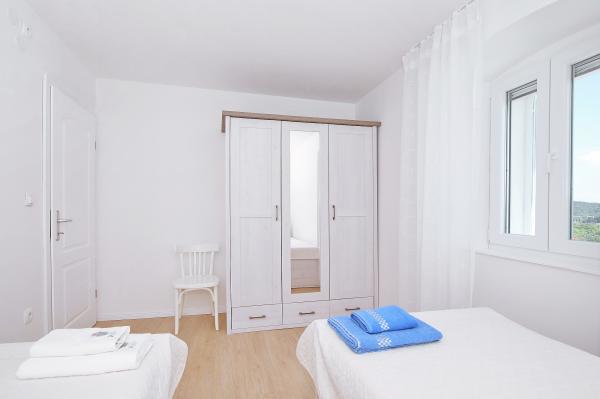 Bili smo 2 obitelji (ukupno 8 ljudi). Kuća je prekrasno smještena s pogledom na more. Sobe vrlo čiste, uredne. Domaćica (Branka) prigodila se tom prilikom. Cijelo vrijeme me kontaktirala prije rezervacije, pomogla nam je organizirati put do otoka. Dala nam je dragocjene savjete o tome što posjetiti na otoku, koje su plaže najljepše i gdje jesti ukusno. Prebacila je kontakt s ljudima koji u selu proizvode sir i maslinovo ulje. Pokušali smo - bili su ukusni! U toplom bazenu kristal očitava vodu. Vrt u dvorištu s voćem: naranče, šipak, smokve. Vikendica u vrlo intimnom selu. Bili smo jedini turisti u selu. Vratit ćemo se sljedeće godine! Kuća vrijedna novca! Preporučujemo!