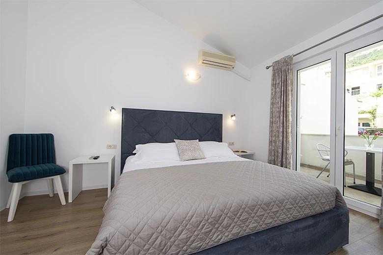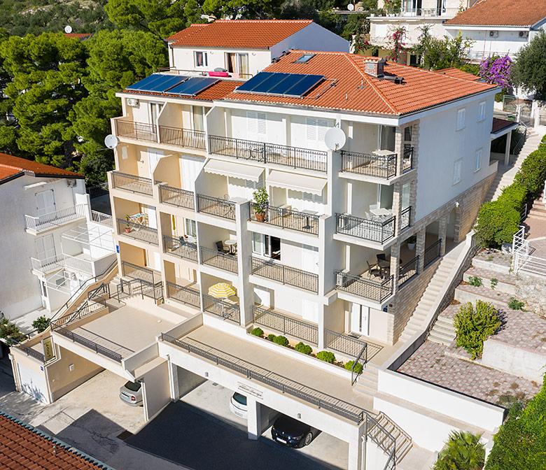 Skriveni od glavne prometnice, naši apartmani nalaze se u mirnoj ulici, a ipak blizu centra Brela. Tek 200m dijeli nas od plaže i središta mjesta, a u neposrednoj blizini nalaze se svi važniji sadržaji, hoteli, restorani, trgovine, tenis tereni, sve ono što će vaš boravak učiniti ugodnijim i nezaboravnim. Iz naših apartmana u Brelima pruža se predivan pogled na more i obližnje otoke. Nudimo Vam 7 apartmana, a za vaše automobile osiguran je parking. Apartmani posjeduju: spavaću sobu, dnevnu sobu, kuhinju, kupaonicu s tušem ili kadom, WI FI, klimu, SAT TV, balkon te pripadajuće parkirno mjesto.