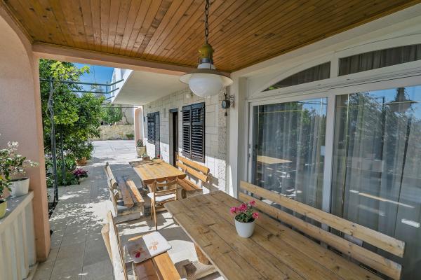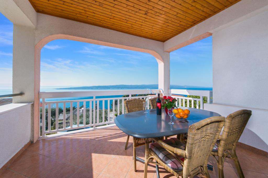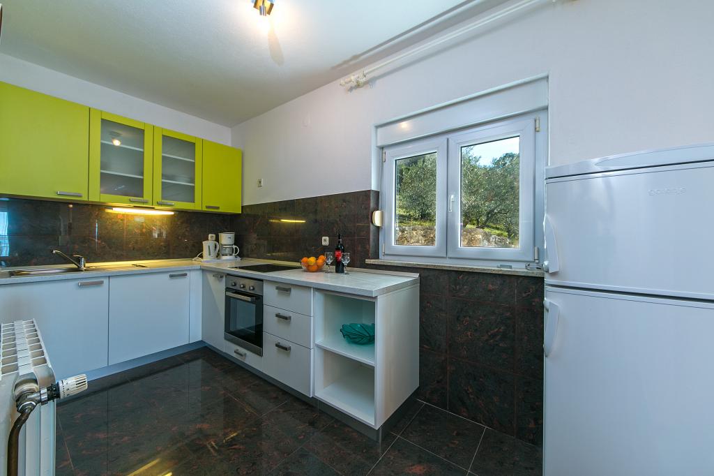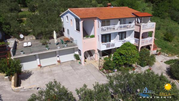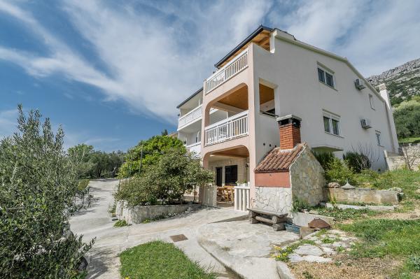 Kuća je smještena u veoma tihom dijelu Brela. Okružena predivnom prirodom, zelenom travom i maslinovim stablima, uz malu pomoć ptica, ova kuća je idealna lokacija za uteći. Svježi zrak i pogled koji oduzima dah pomoći ce vam da se odmorite od posla i svakodnevnih briga.