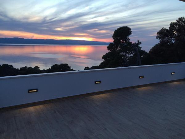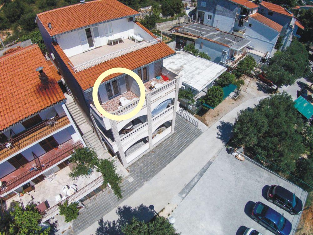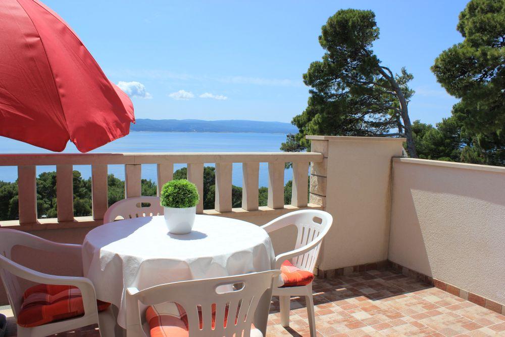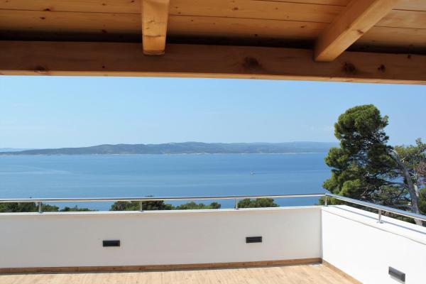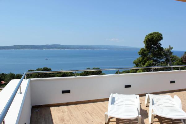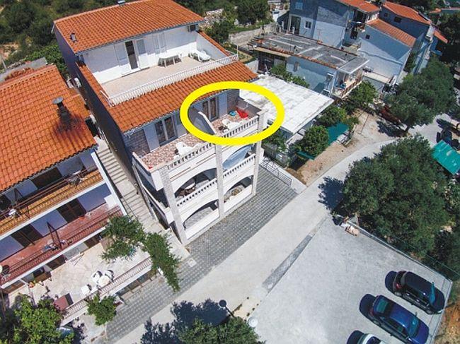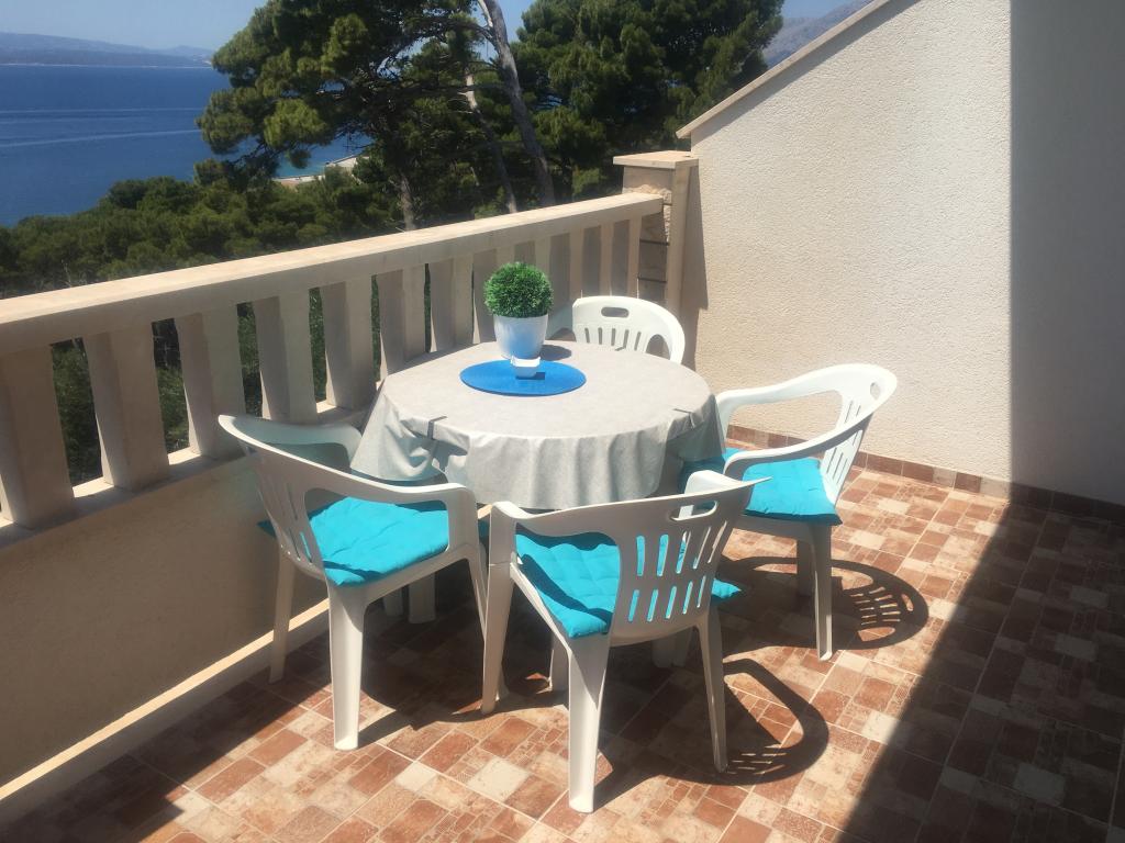 Zgrada se nalazi u jako mirnoj (slijepoj) ulici u kojoj nema prometa (samo automobili koji pripadaju gostima i vlasnicima zgrada) i nudi predivan pogled na borovu šumu, more i na obližnji otok Brač. Udaljenost do glavne plaže i do središta mjesta je cca 300m. Naš parking je osiguran ispred zgrade.