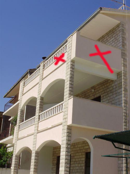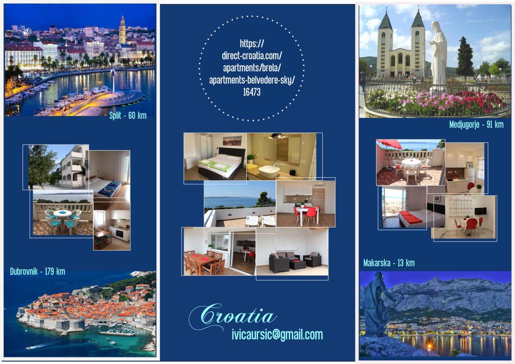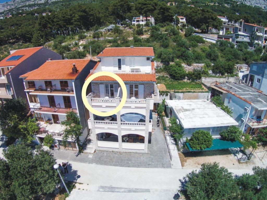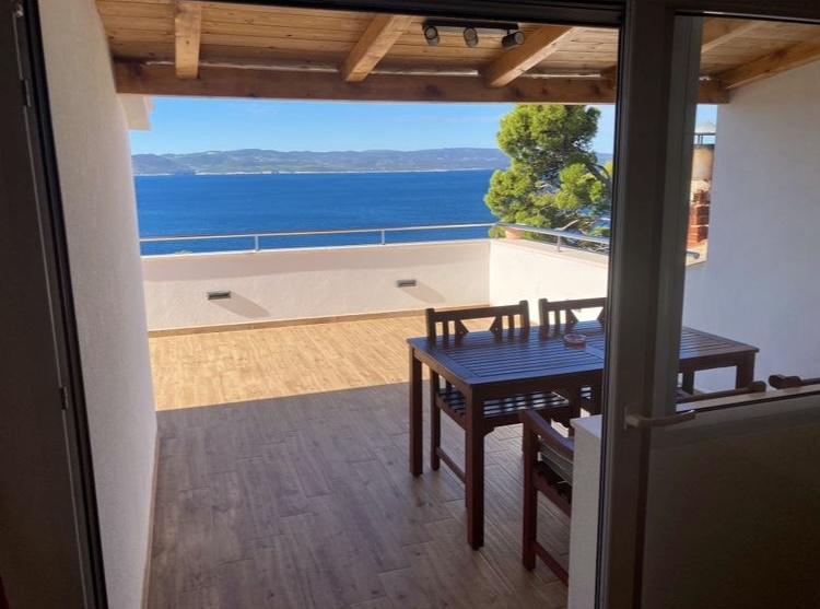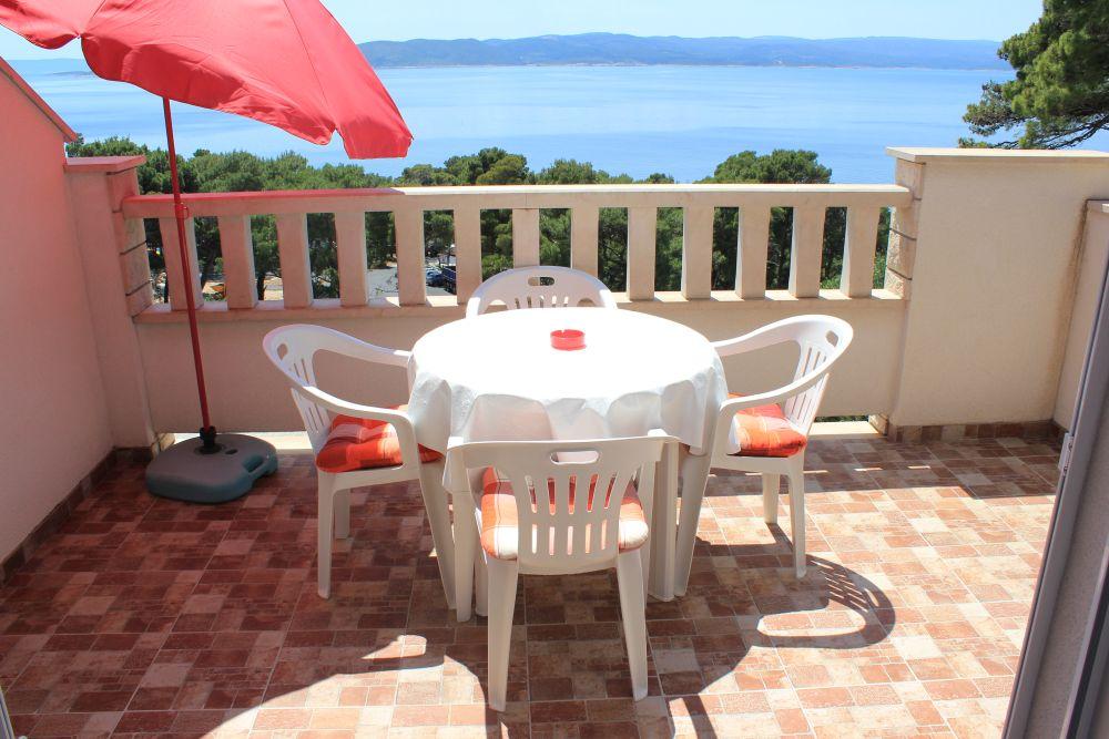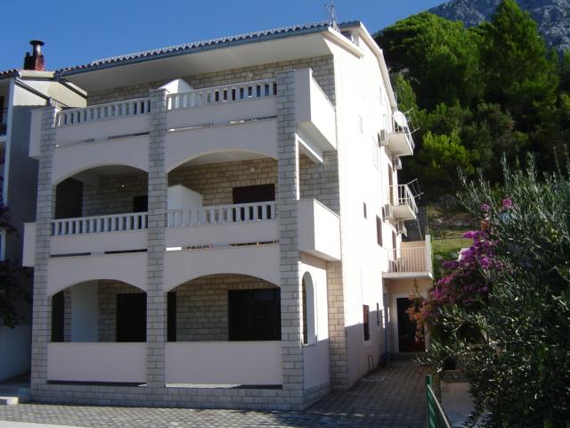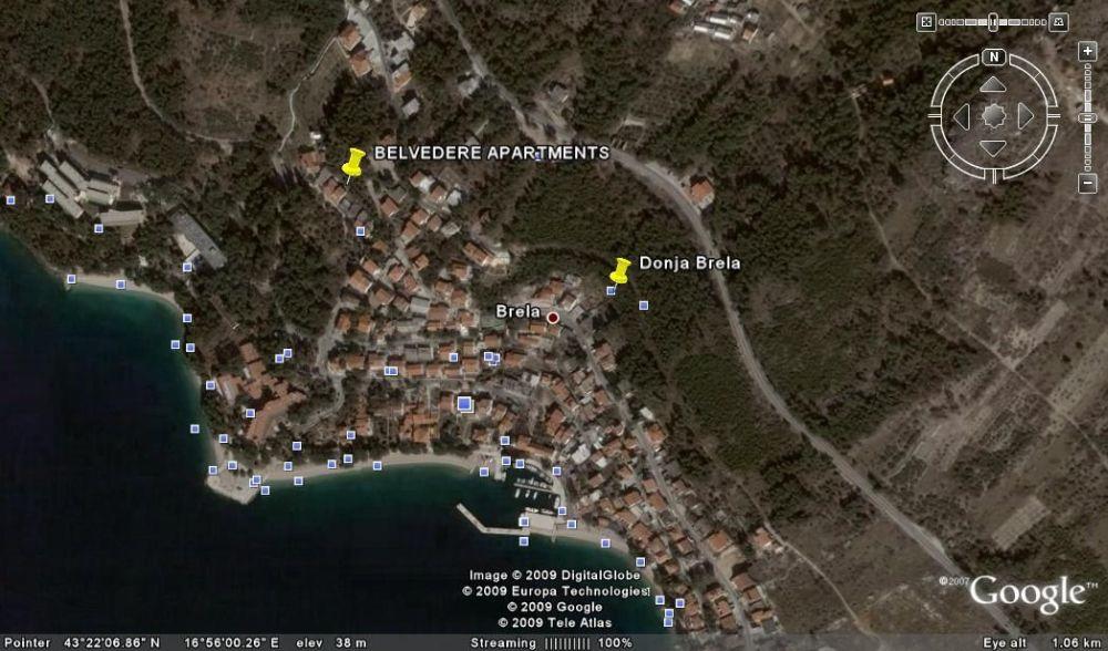 Zgrada se nalazi u jako mirnoj (slijepoj) ulici u kojoj nema prometa (samo automobili koji pripadaju gostima i vlasnicima zgrada) i nudi predivan pogled na borovu šumu, more i na obližnji otok Brač. Udaljenost do glavne plaže i do središta mjesta je cca 300m. Naš parking je osiguran ispred zgrade.