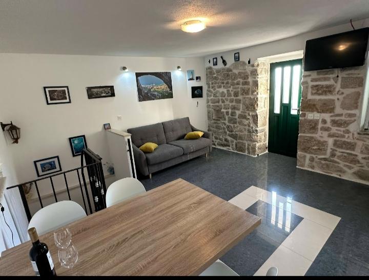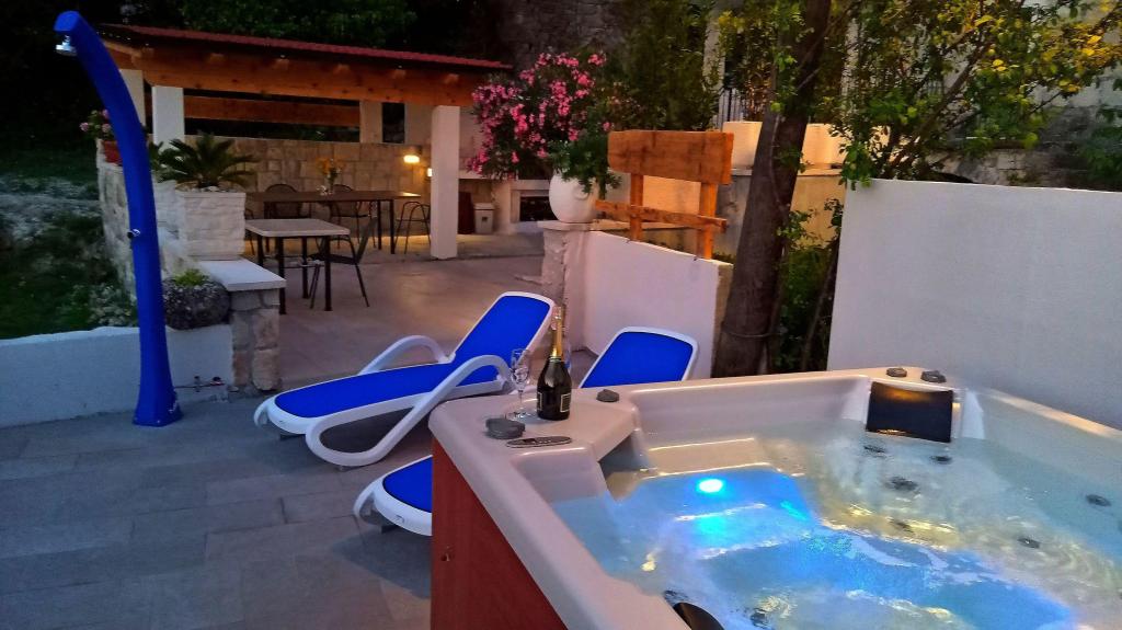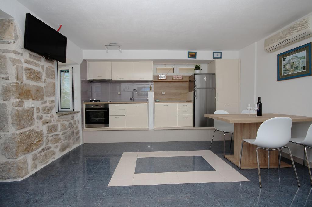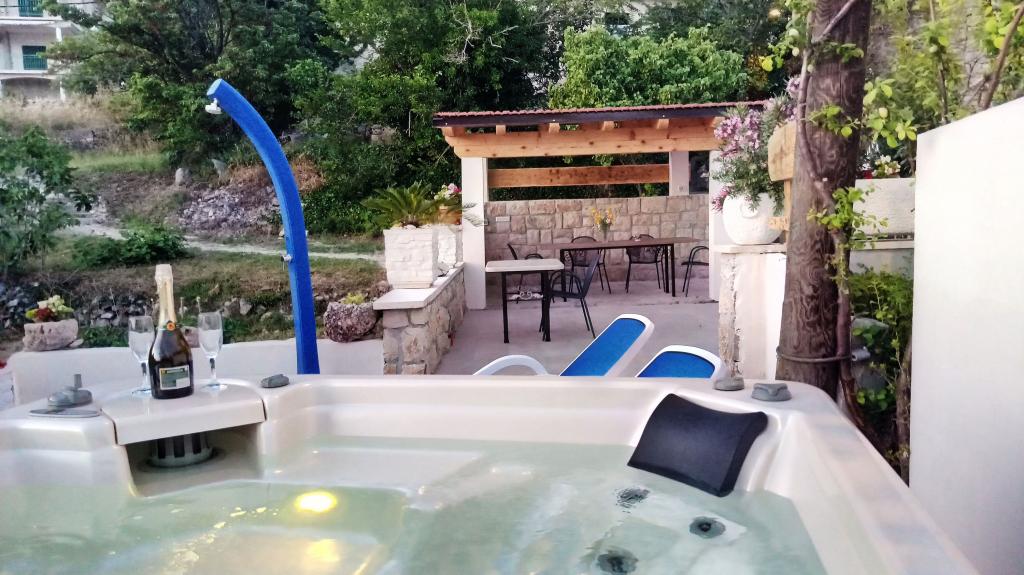 Apartman Dalmacija se nalazi u prizemnoj dvokatnici. Potpuno renoviran 2019 god. U prizemlju se nalazi spavaca soba za odrasle sa kupaonicom, iznad toga je kuhinja sa kaucem na razvlacenje za jednu osobu ili dvoje djece. Ispred se nalazi prostrana terasa sa grillom, stol, stolice za sjedenje, te jacuzzi sa udobnim lezaljkama. Apartman Ante se nalazi iznad Ap Dalmacija, idealan za obitelj. Apartman ima veliku kuhinju sa sankom i barskim stolicama, dnevni boravak sa kaucem na razvlacenje. Odvojeno je spavaca soba za odrasle, te kupaonica. Apartman ima balkon sa pogledom na more i planinu. Veselimo se Vasem dolasku!