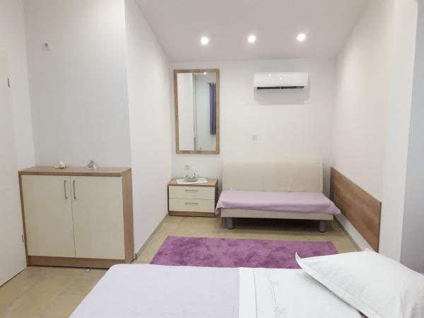 Izuzetno čist apartman, domaćini predivni, ljubazni, gostoprimljiv i u svakom trenutku spremni pomoći na bilo koji način. Sve slike na bookingu100% odgovaraju slikama. Za ljude željne pravog mira i ljepote prirode i čistoće sve preporuke. Plaža je malo udaljena ali strpljenjem se dođe i do nje. Uz čistu, malu plažu ima kafić, prodaja peciva i čisto more. Sve preporuke i pohvale domaćicama