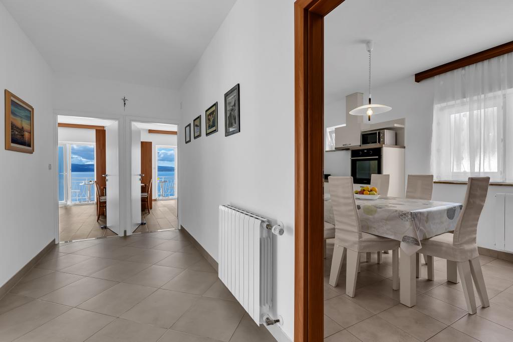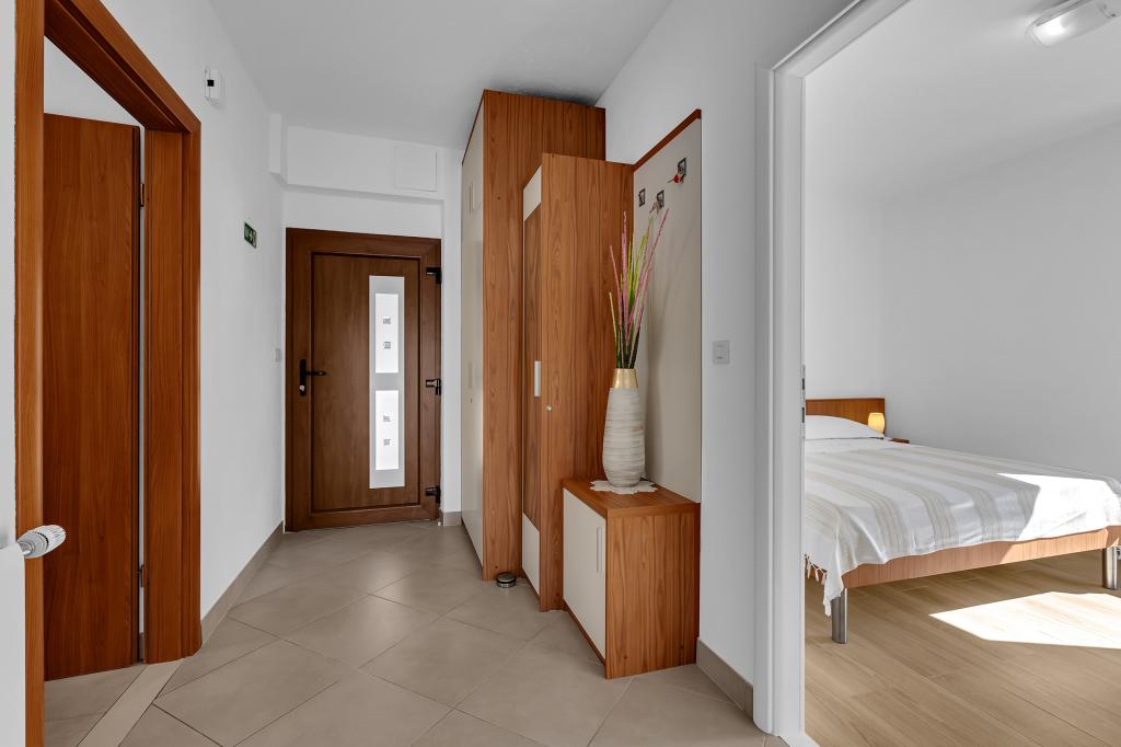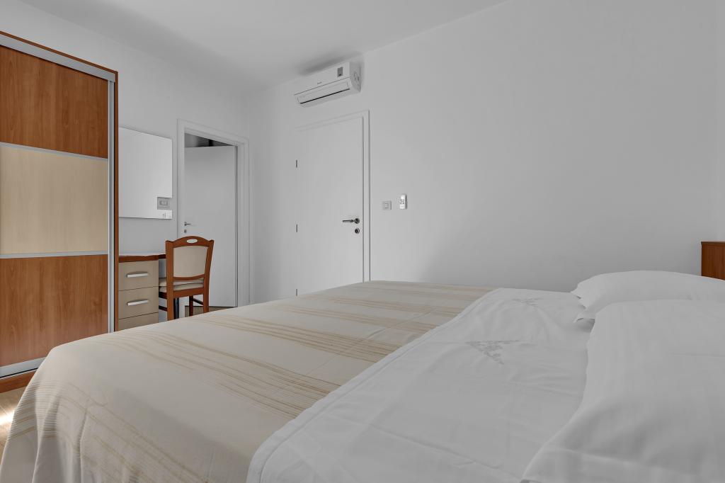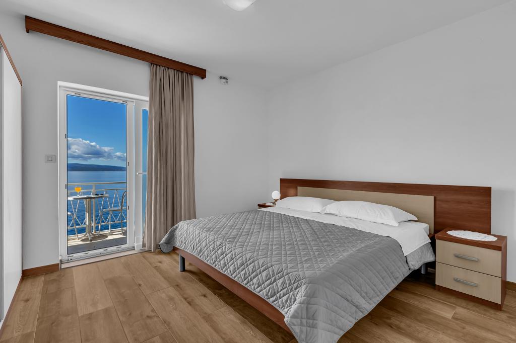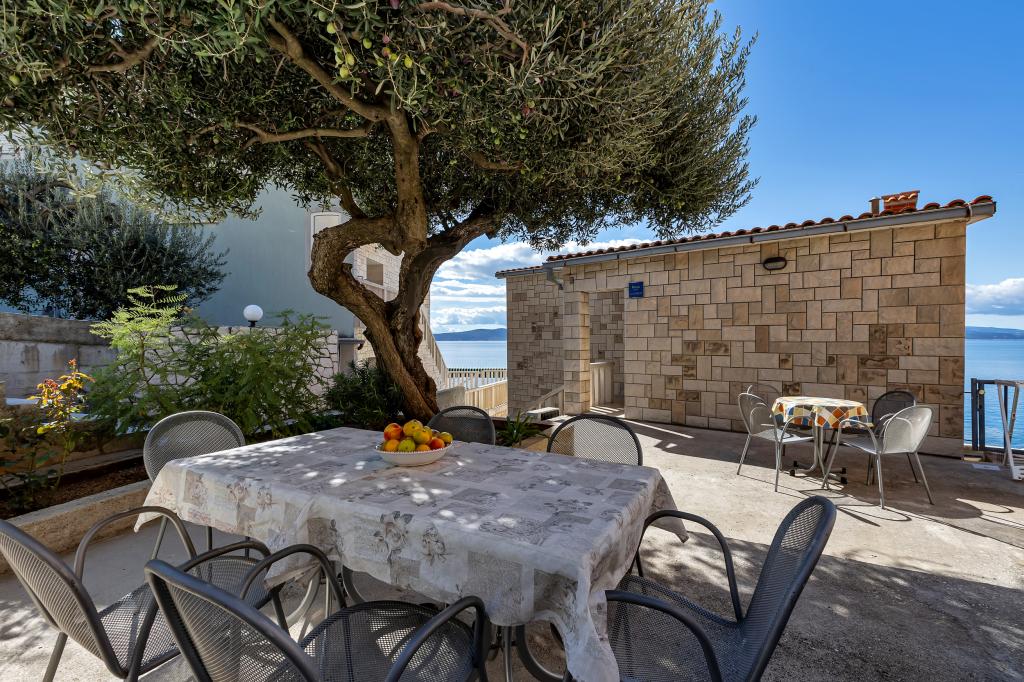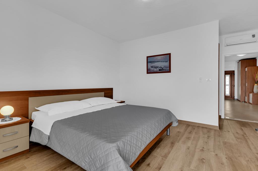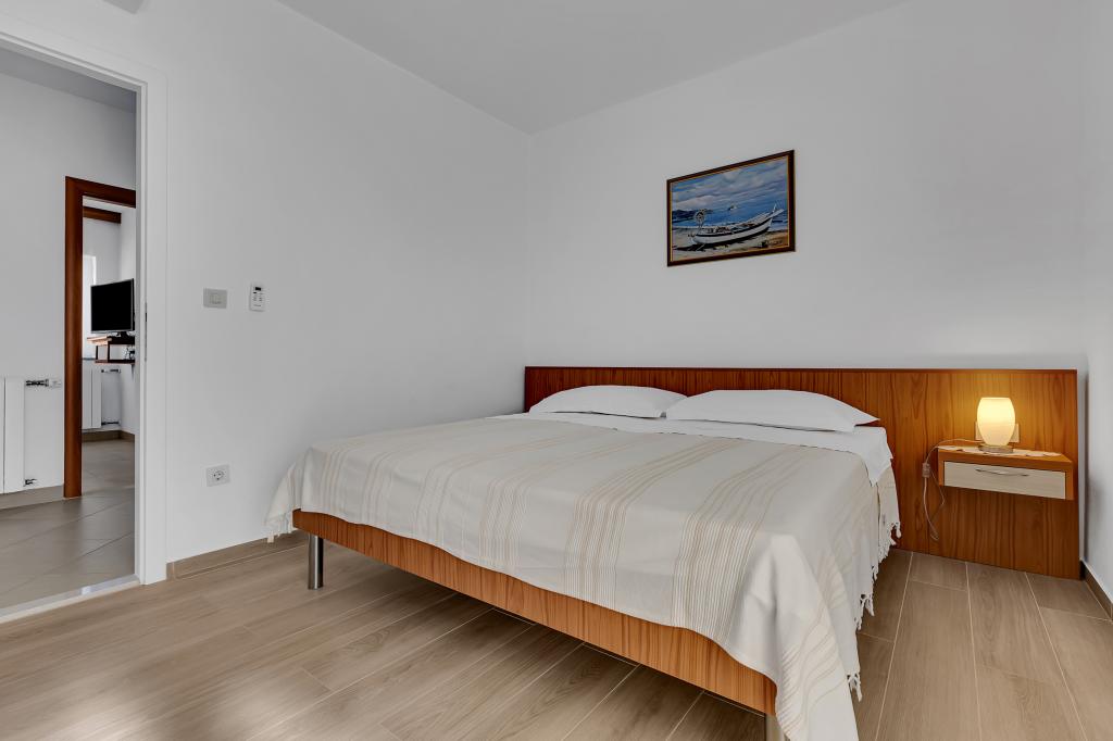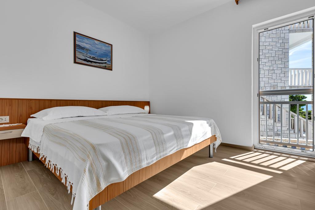 Apartman A2 sa jednom spavaćom sobom nalazi se u prizemlju kuće, ima 25 m2 te 5 m2 balkona. Udaljen je od mora 10 metara... Apartman A6 nalazi se na drugom katu kuće. Ima 90 m2, 15m2 balkona te 20 m2 terase. Udaljen je od mora 20 metara. Maksimalni kapacitet je za 7 osoba.
