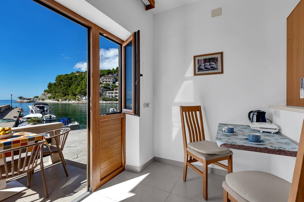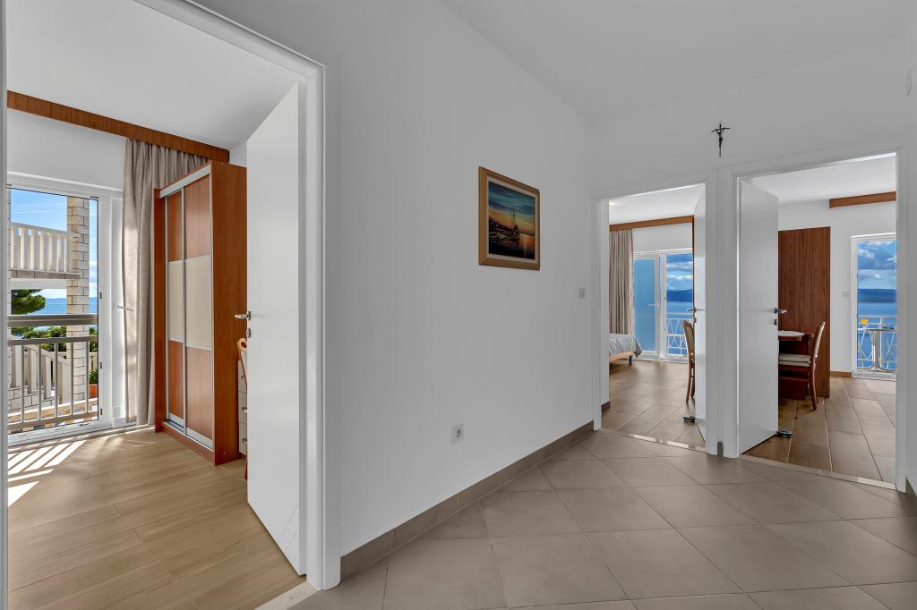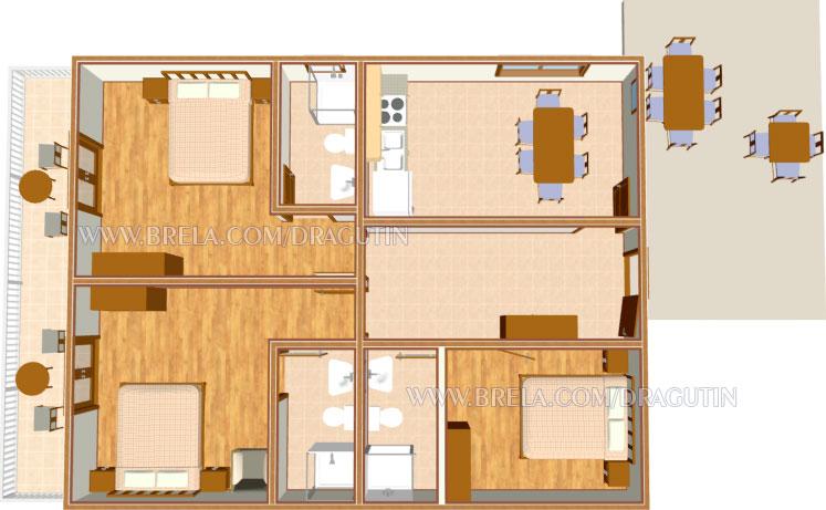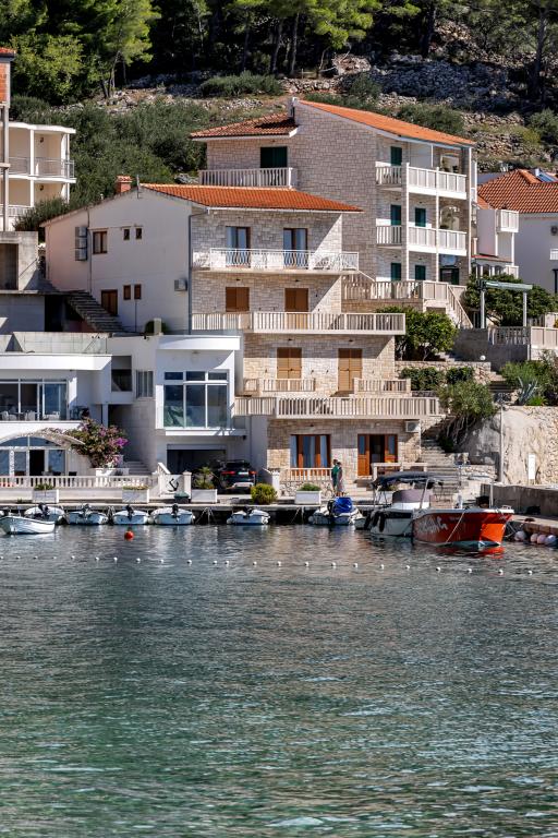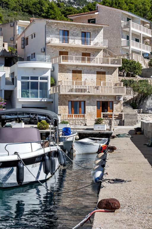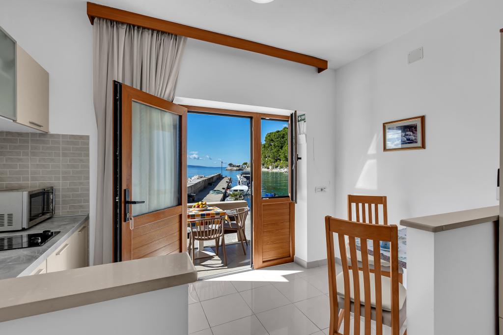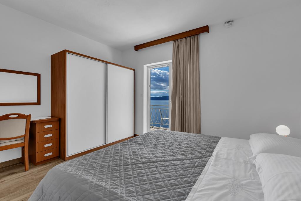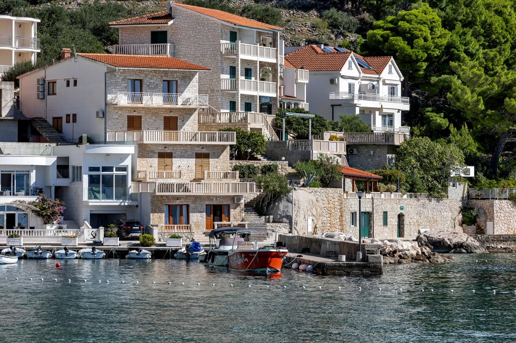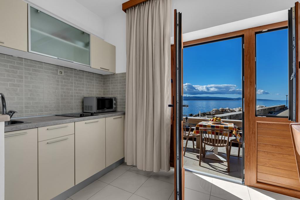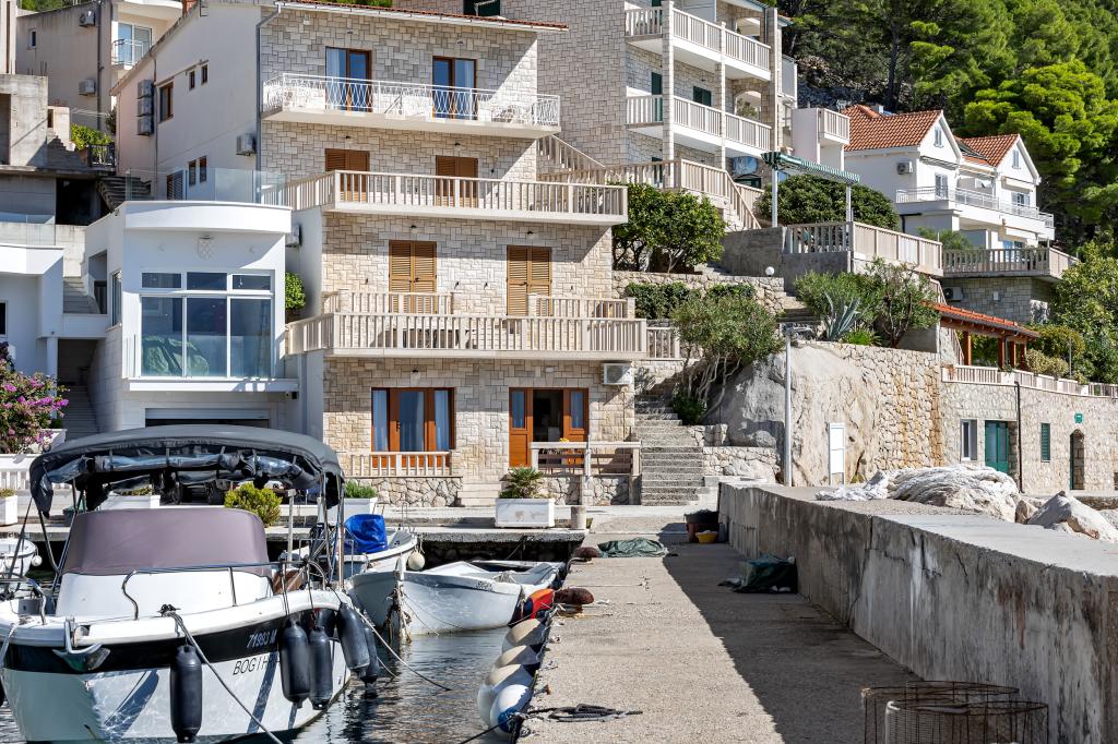 Apartman A2 sa jednom spavaćom sobom nalazi se u prizemlju kuće, ima 25 m2 te 5 m2 balkona. Udaljen je od mora 10 metara... Apartman A6 nalazi se na drugom katu kuće. Ima 90 m2, 15m2 balkona te 20 m2 terase. Udaljen je od mora 20 metara. Maksimalni kapacitet je za 7 osoba.