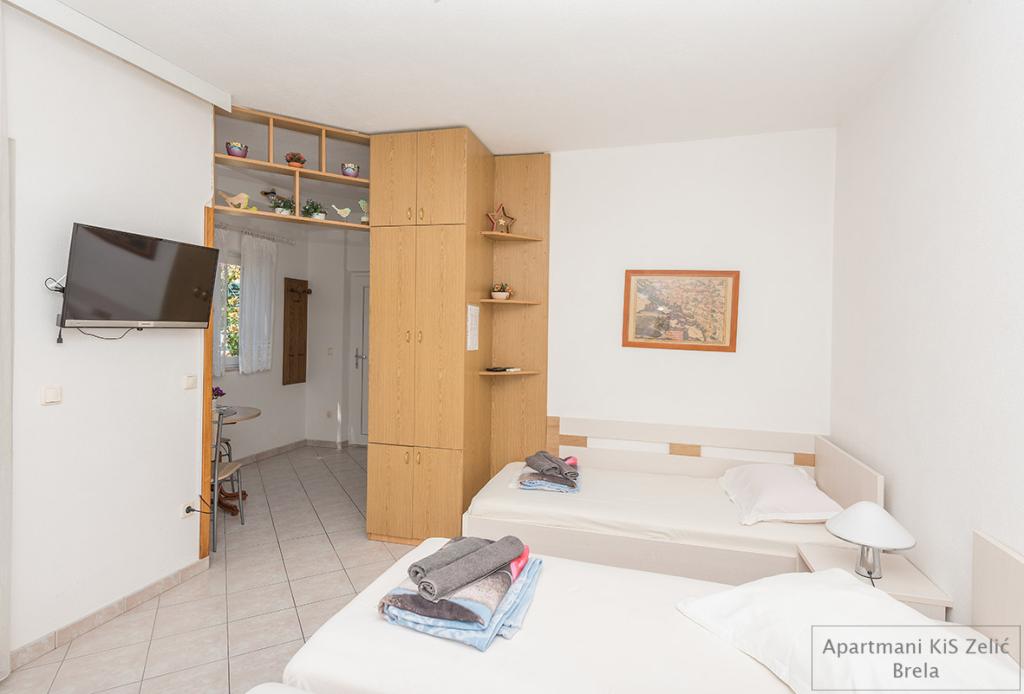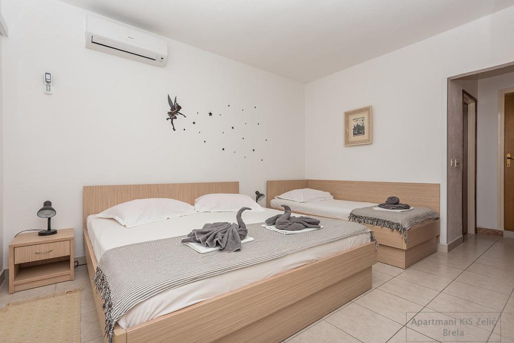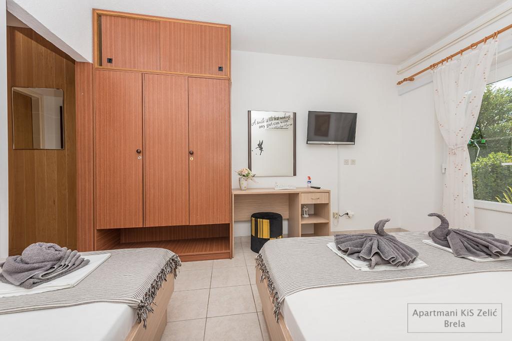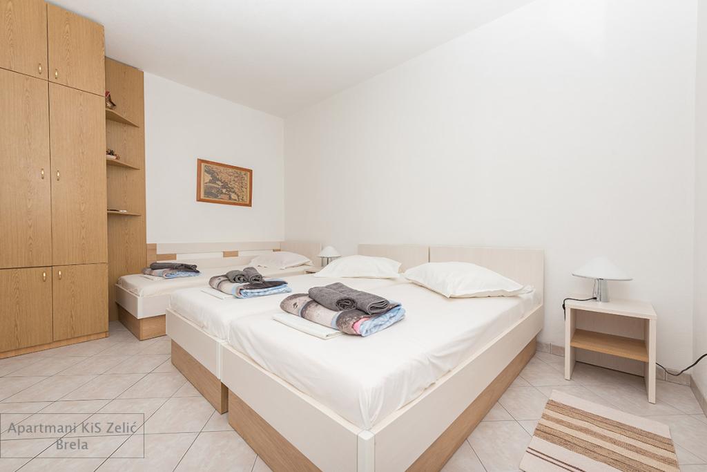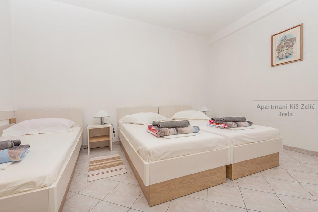 Smješteni na mirnoj lokaciji, samo 200 m od mora i prekrasnih šljunčanih plaža, nalaze se Apartmani KiS Zelić. S jedne strane pruža se prekrasan pogled na more i otoke, a sa druge na planinu Biokovo. Apartmani u ponudi imaju sve što Vam treba za ugodan boravak. Sobe su opremljene s kompletnom posteljinom i ručnicima. Ručnici se mijenjaju svaka 3 dana, a posteljina svakih 7 dana. Kuhinja s blagavaonicom je opremljena štednjakom, hladnjakom, kuhalom za vodu, kompletnim posuđem i priborom za jelo. Svaki apartman ima terasu ili balkon, satelit TV, WiFi i parking. Najbliži market je 200 m udaljen, restoran sa mediteranskom kuhinjom 200m.