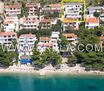 Kompletno opremljen apartman (2 spavaće sobe, svaka s kupaonicom i klima uređajem, kuhinja s blagovaonicom, 2 balkona, zaseban ulaz)u predjelu brela-soline, udaljen 5 minuta hoda do plaže i do centra, 30m udaljen od supermarketa. Piće dobrodošlice uključeno u cijenu.