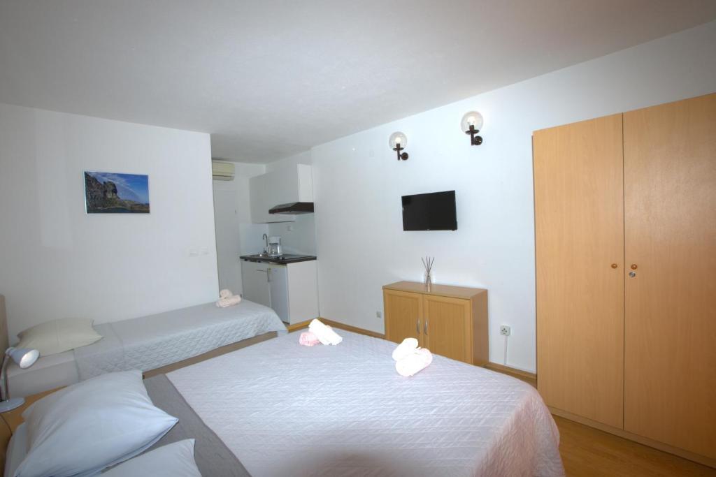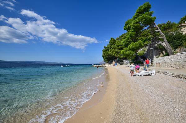 Apartman se nalazi u mirnom kvartu Brela, blizu centra (5 minuta pješice - 400 m) i centra Baške Vode (15 min pješice). Za kretanje vam ne treba auto. Šljunčana plaža nalazi se 200 m ispod kuće (od kuće do plaže vode stepenice), a proteže se 7 km duž obale i mjesta Brela, što je odlično za ugodnu opuštajuću šetnju uz obalu. Trgovina se nalazi ispod kuće, udaljena svega 100 m. Poznata plaža u Europi - plaža Punta Rata udaljena je samo 10-15 minuta hoda od kuće. U apartmanu možete pronaći čistu posteljinu, kuhinjske krpe i ručnike za kupanje za svaku osobu. Parkirno mjesto je dostupno i ne naplaćuje se. Nalazi se u neposrednoj blizini nekretnine. Kako biste prvi put došli do parkinga, trebat će vam naša pomoć.