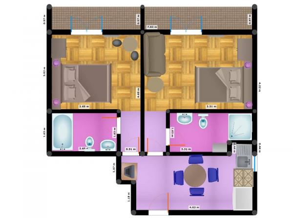 Apartman za četiri osobe plus dva pomoćna ležaja (45 m2)