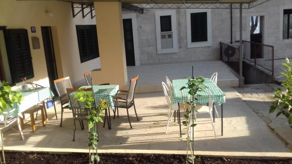 Apartmani se nalaze u centru Brela. Kuća je prvi red do mora. Iza kuće nalazi se terasa. Za sve apartmane je osiguran parking.
