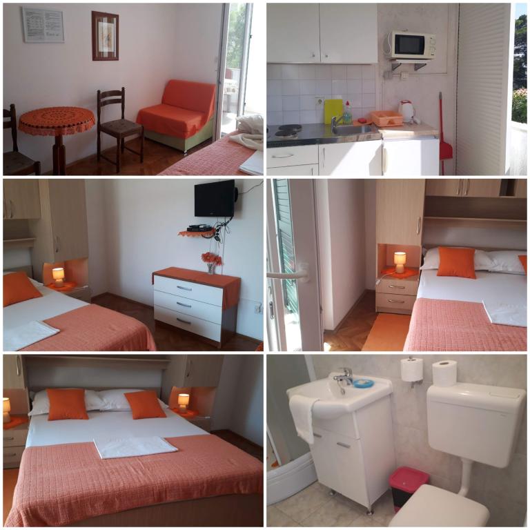 Studio apartmani Roko nalaze se u prizemlju obiteljske kuće. Brela se nalaze na Makarskoj Rivijeri i najljepši su dio. Prostiru se 6 kilometara i imaju nekoliko velikih i nekoliko manjih plaža. U neposrednoj blizini najljepše, nekoliko puta nagrađivane plaže nalaze se apartmani Roko. Mogućnost jednodnevnih izleta u obližnja izletišta :Nacionalni park KRKA, park prirode BIOKOVO, MEĐUGORJE I MOSTAR (BIH), ili otoke HVAR BRAČ. Tko jednom posjeti Brela ponovno se vraća !!! Svi studio app. su opremljeni 2 1 ležajem, kuhinjom, klimom, WIFI, sat-tv, kupaonicom, veliki balkon, Mogućnost korištenja perilice rublja uz nazočnost domaćice. Ručnici, sušilo za kosu su sastavni dio kupaonice.