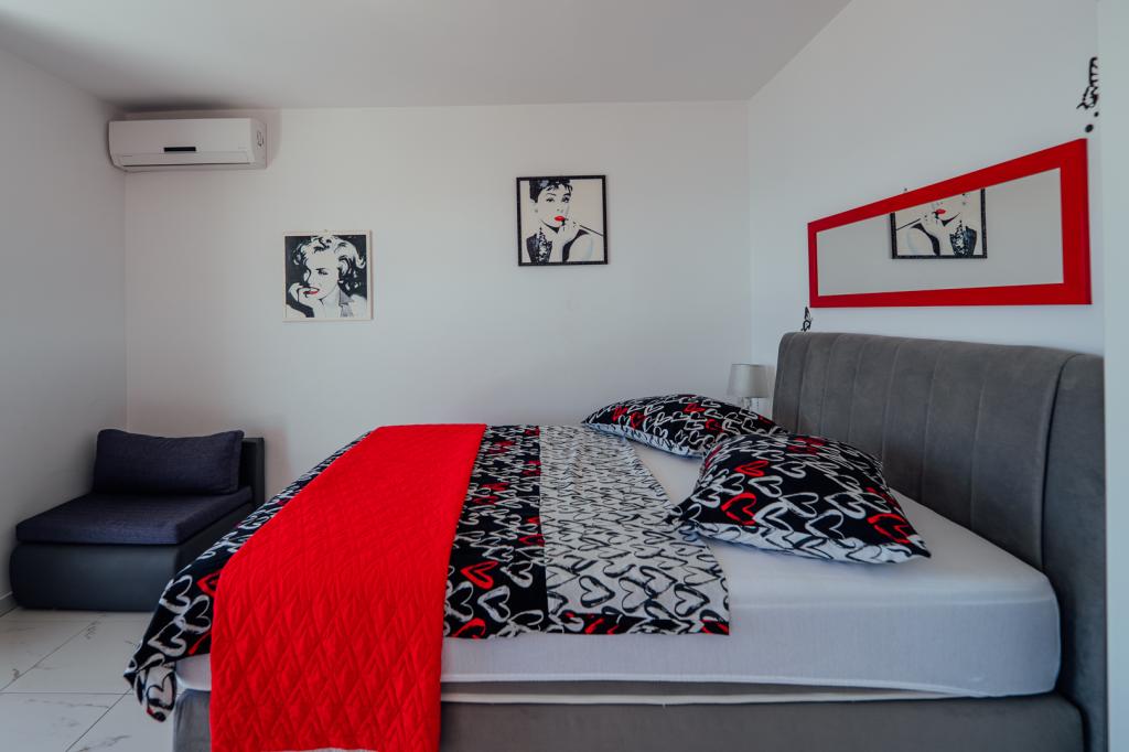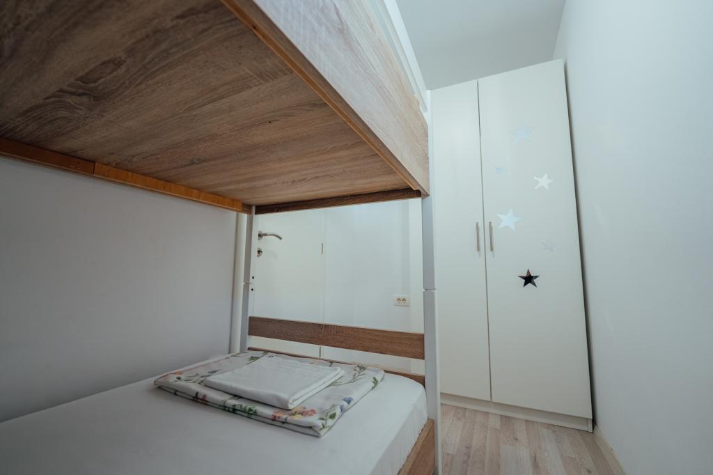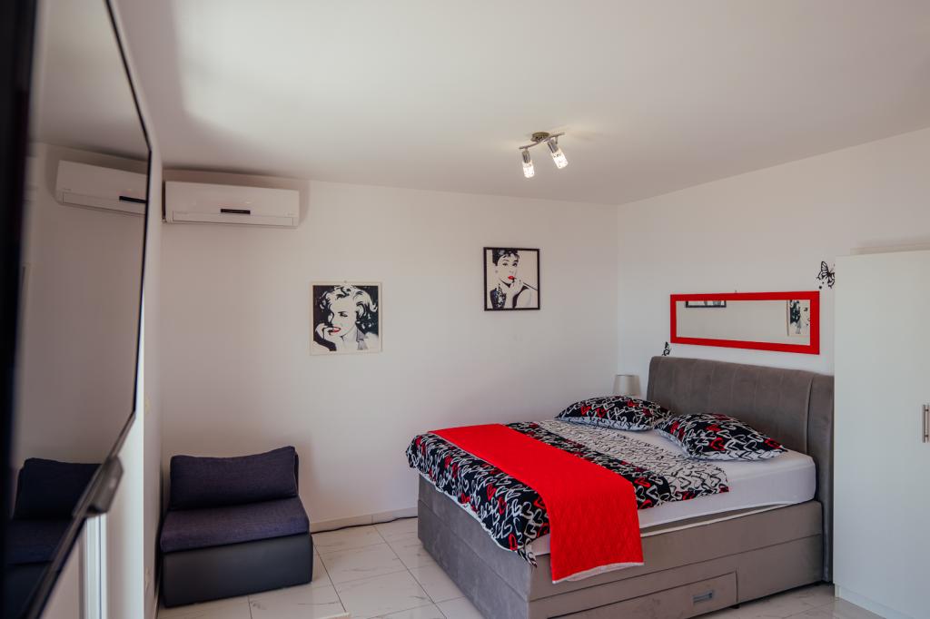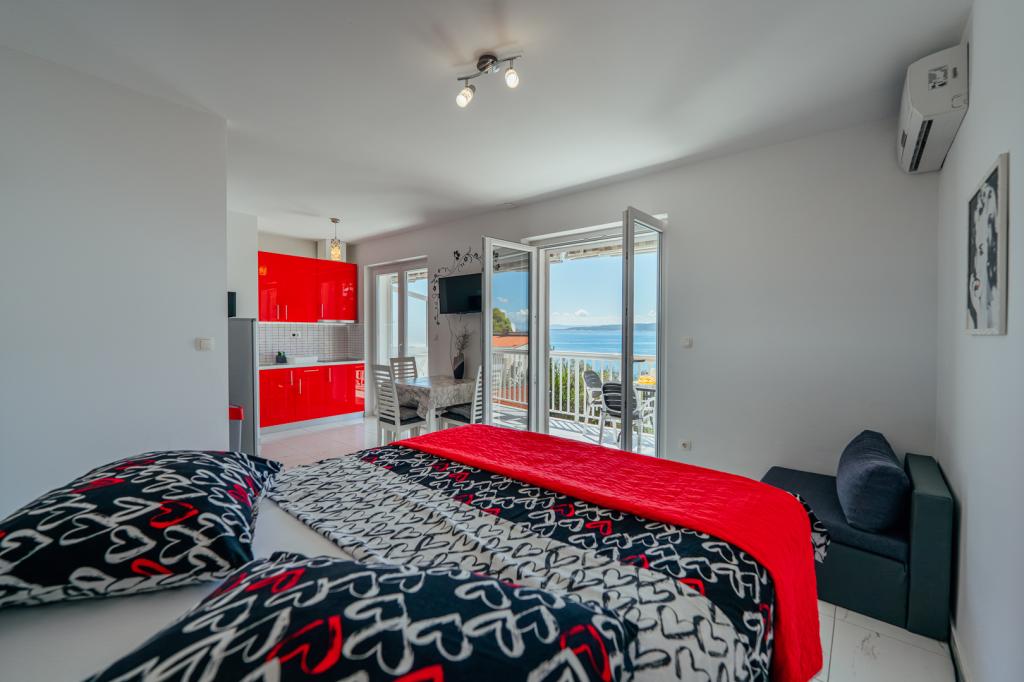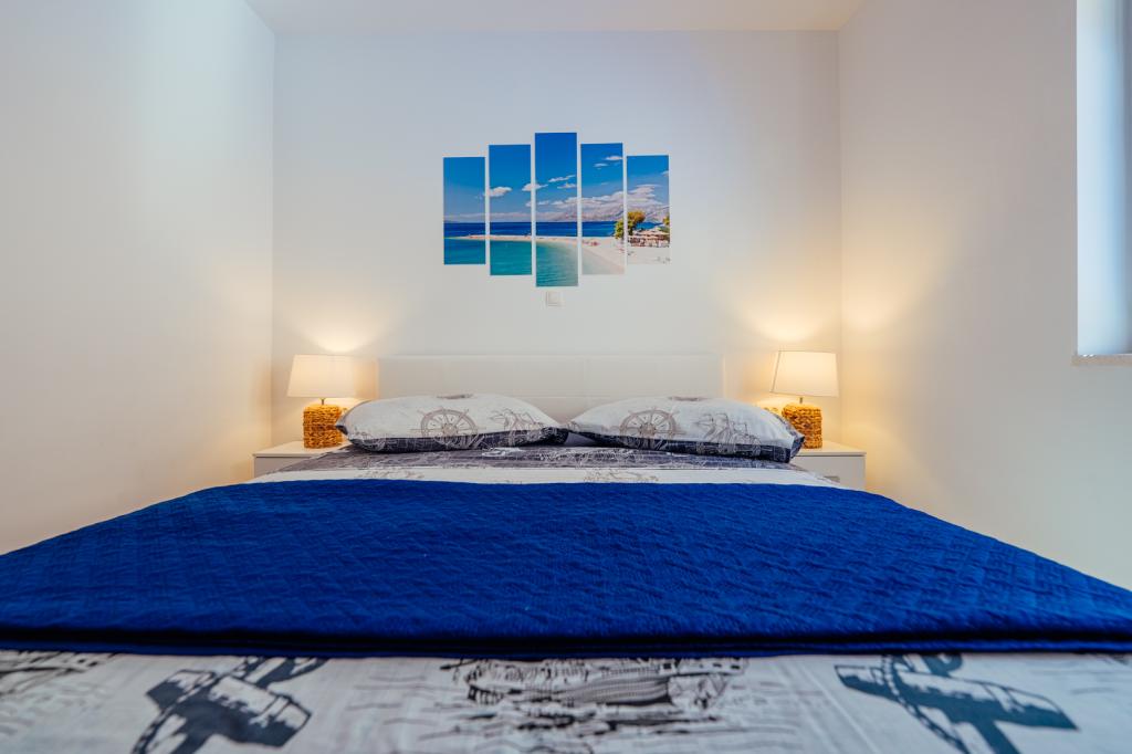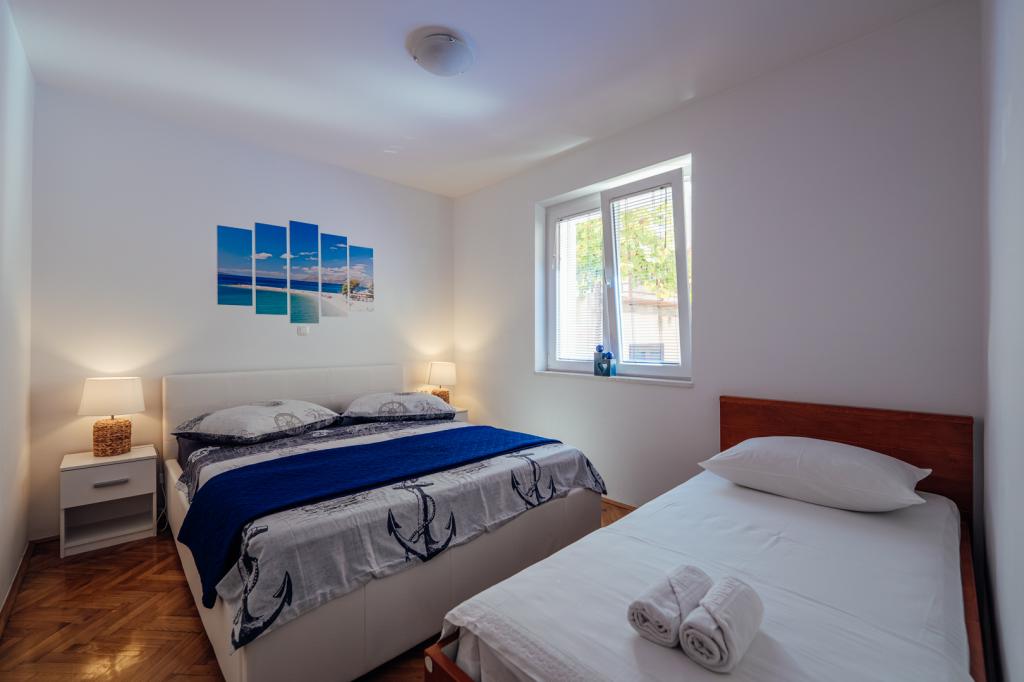 Bilo nas je pet u A5+1. Apartman je vrlo čist i lijepo uređen. Sve što trebate je tu. Namještaj u spavaćoj sobi je također nov, a veliki krevet je vrlo udoban. Također je prednost imati 2 klima uređaja u stanu, tako da je cijeli stan ugodno rashlađen. Vrlo lijepa terasa s pogledom na more i udobnim namještajem. Nakon otprilike 3 minute hoda more je vrlo blizu. Brela su na planini, lijepo mjesto, ali morate se popeti uz puno stepenica. Domaćini su jako ljubazni i uslužni ljudi. Ivana i Milane, hvala vam na svemu što ste učinili za nas.
