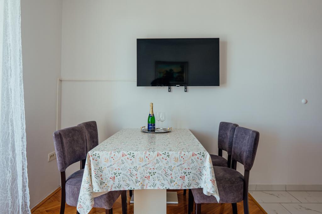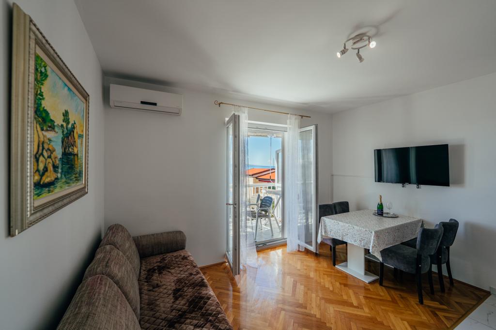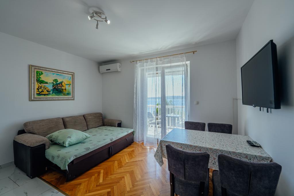 Vrlo lijep apartman, nov, čist, s kuhinjom i pogledom na more s balkona. Domaćini su bili jako ljubazni i uslužni (brzo je dogovoren automehaničar zbog sitnog problema s autom, uređen je dekoder da se vidi euro, te ispostavljen račun). "Nema problema" ni s čim. Srdačan pozdrav i od srca ga preporučujemo svima