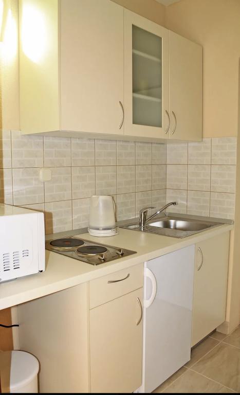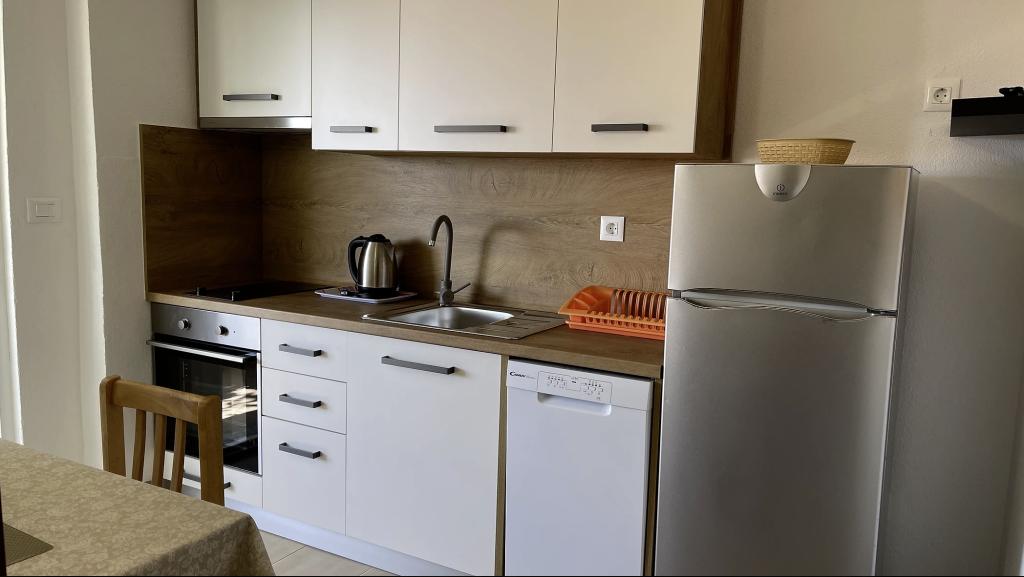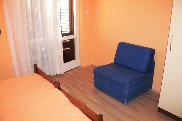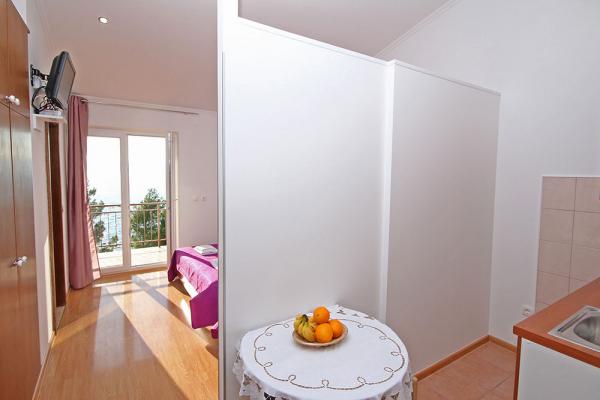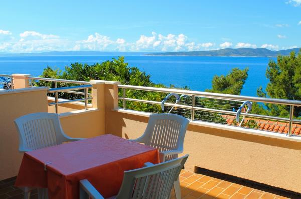Stigli smo s odmora i odmah pišemo recenziju. Soba: sve odgovara fotografiji. Soba je prostrana, čista. Svijetla. Mala kuhinja sa svim kuhinjskim priborom i posuđem. Hladnjak, mikrovalna pećnica, električno kuhalo za vodu, TV, klima uređaj. A pogled s balkona je prekrasan. Bilo je jako ugodno sjediti na balkonu navečer. Kad smo stigli, domaćica nas je dočekala i ponudila nam osvježavajuća pića s ceste. Vrlo ljubazni domaćini, koji su se pobrinuli da nam bude ugodno tijekom odmora. Sami apartmani su u prvoj liniji, morate se penjati stepenicama. vrsta dnevne vježbe. Za starije osobe penjanje će biti teško. Tražili smo apartmane dalje od centra Brela. Željeli smo tišinu i dobili smo je. U ovom dijelu Brela je mirno. Sve nam se svidjelo. Preporučujemo ove apartmane za opuštanje. I Brela općenito.