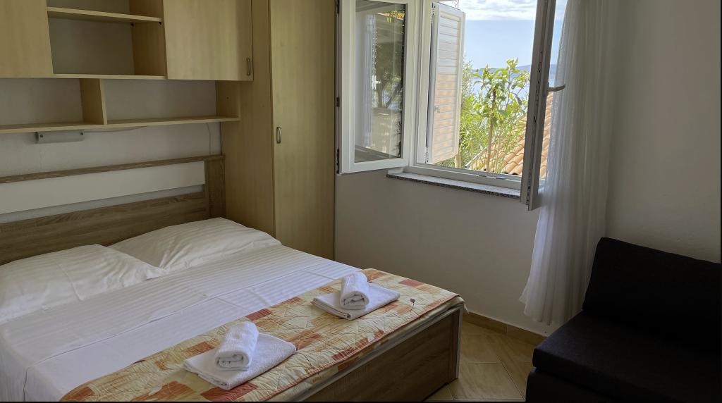 Vrlo ljubazni i uslužni vlasnici. Po dolasku me dočekalo hladno piće. Dobili smo čiste ručnike svaka 3 dana. Pogled je prekrasan, spuštajući se niz stepenice čekaju vas prekrasne plaže na kojima nije bilo gužve, samo kristalno čisto more. Pa, ulice su jako strme, ali naš problem parkiranja je odmah riješen. Vratili bismo se bilo kada
