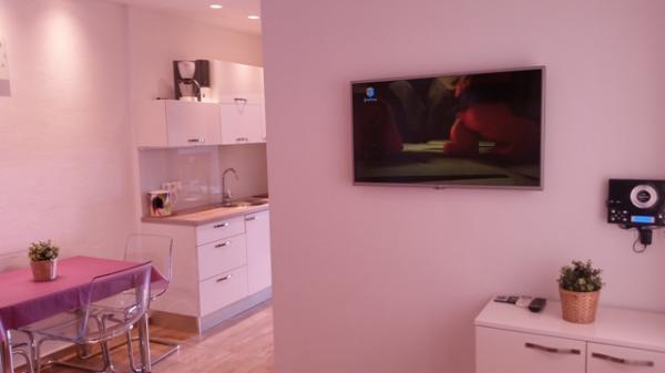 Studio je vrlo lijep i moderan, vrlo čist. Full opremljena kuhinja. Blizina plaže i trgovine, u mirnom susjedstvu. Parking je kraj kuće. Bili smo s malim djetetom i bilo nam je stvarno super, preporučujem 100%. Domaćini su vrlo ljubazni i gostoprimivi.