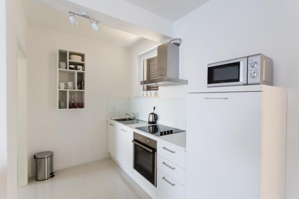 Nova kuća na osami iznad mora s četiri prostrana i moderna apartmana. Izgrađena 2013. Nalazi se neposredno iznad plaže, prvi red do mora.