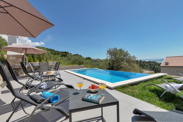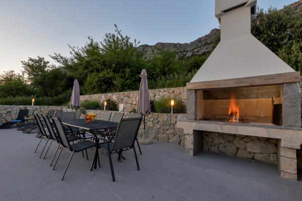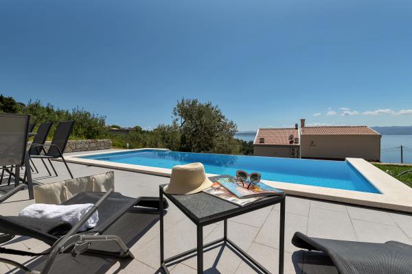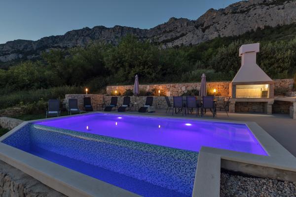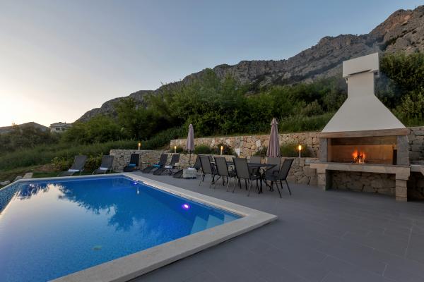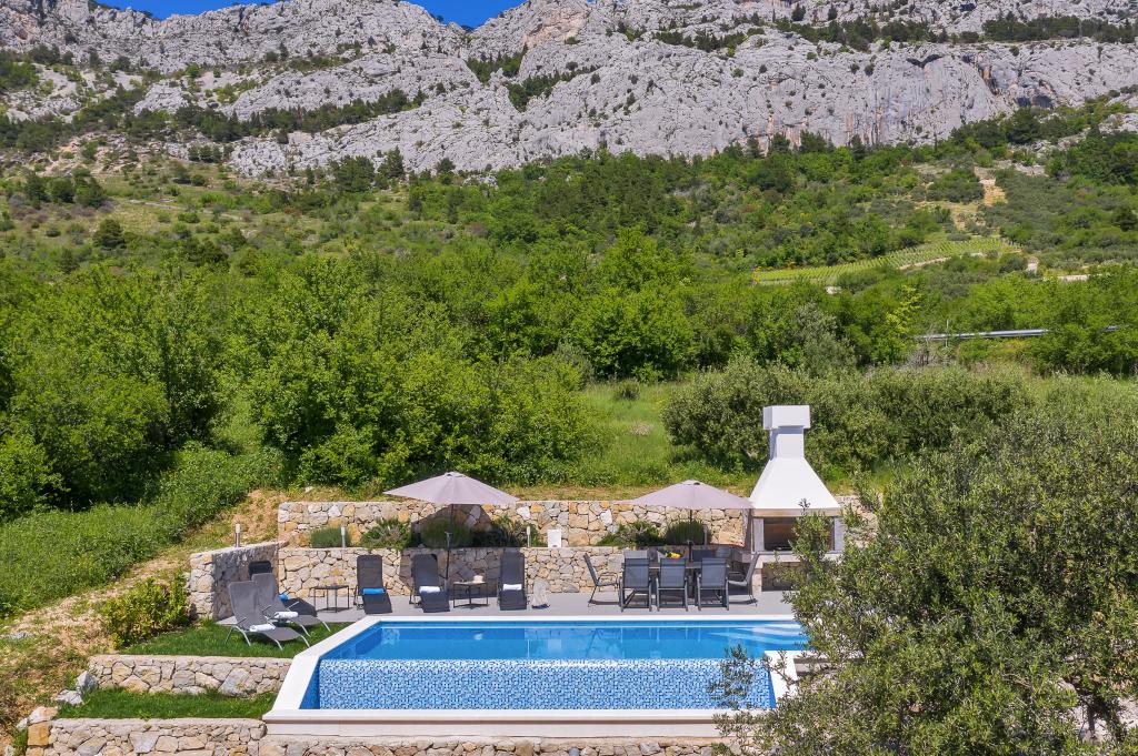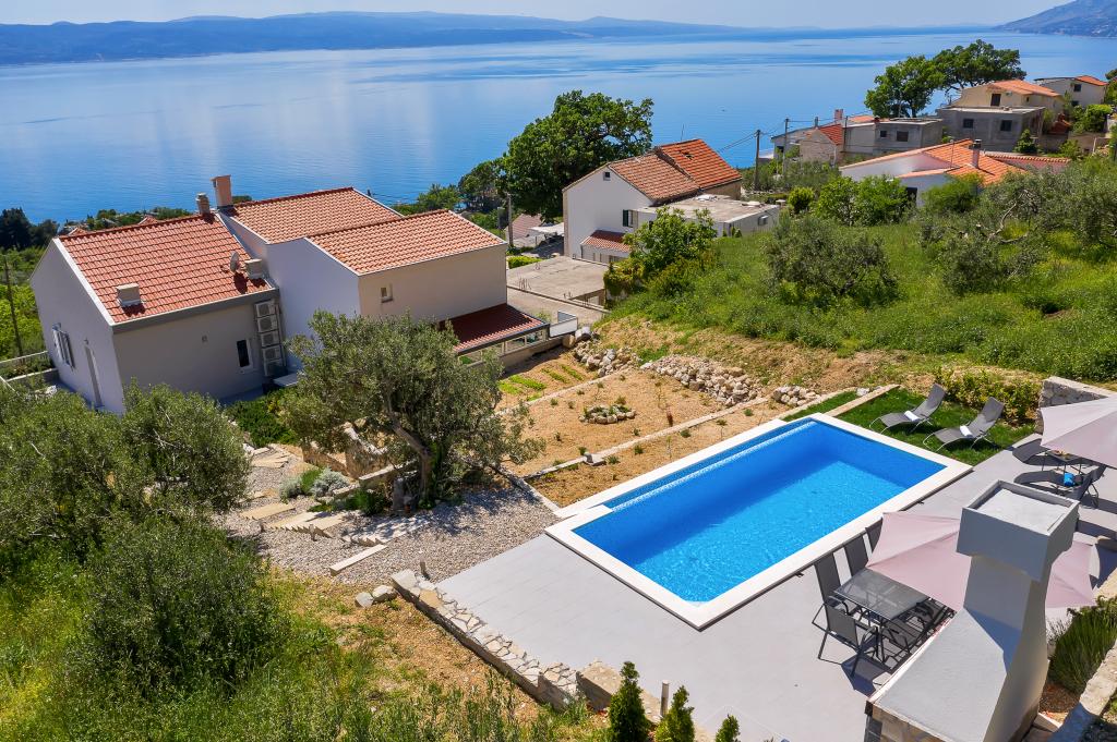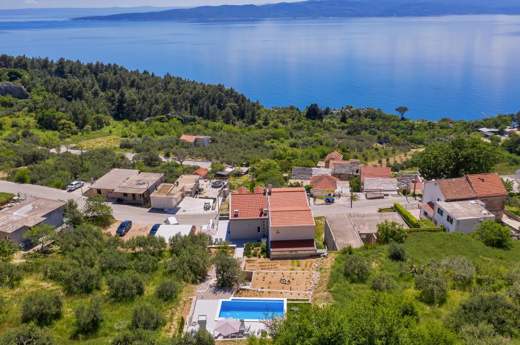 Okućnica Ville NiMa okružena maslinama prostire se na 400m2 na kojoj je, osim zelenih površina, smješten bazen veličine 21m2 (3x7m), pokraj kojega je terasa s ležaljkama te ljetna kuhinja gdje se naši gosti mogu opustiti i uživati u prekrasnom pogledu na more ili na grandioznu planinu Biokovo. Najbliža plaža je udaljena oko 500m, centar Brela udaljen je oko 2km, a plaža Punta Rata 1,20km. Osim parkinga uz kuću našim gostima smo osigurali parking 60m udaljen od mora.