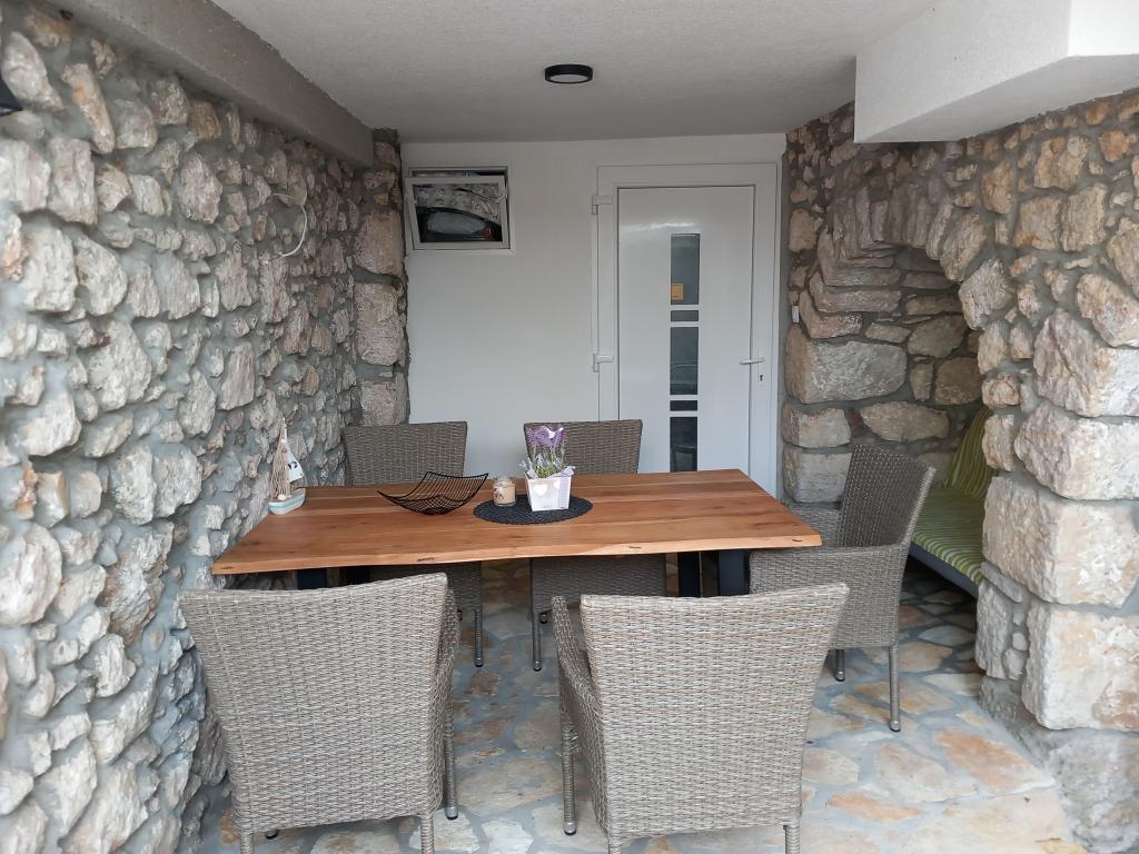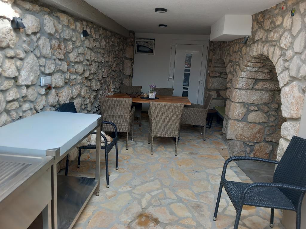 Kompletno uredena kuca za odmor sa dva apartmana.. u prizemlju 2+1,spavaca soba + dnevni boravak sa kuhinjom, terasa sa grillom..na katu 2 spavace sobe ,dnevni boravak sa kuhinjom..terasa..Oba Apartmana imaju perilicu za rublje,TV , Mikrowelle, kuhalo za vodu...4 km do Novi Vinodolski ili Selce..do Crikvenica 8 km..