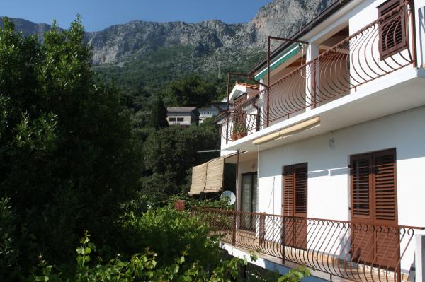Naša kuća smještena je na odličnoj lokaciji, u neposrednoj blizini plaža (3 red do mora), kafića, restorana, šetnjice uz plažu, te samog centra mjesta. Okružena je obiteljskim kućama. Apartmani u našoj kući nude vam mir, tišinu i nadasve ugodnu atmosferu. Oba apartmana ima besplatni bežični pristup internetu. Naše smještajne jedinice prostrane su, jednostavne i moderno uređene. Imaju potpuno opremljenu kuhinju, kupaonu, balkon ili terasu. Ono što bi istakli svakako je prekrasan pogled na more i otoke, te na planinu Biokovo.