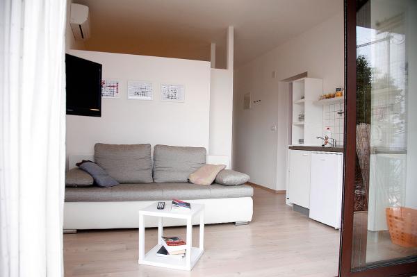 Turistička pristojba je uključena u cijenu. Šaljemo pismenu potvrdu rezervacije (voucher)Nedaleko od apartmana, u centru, nalazi se trampulin za djecu Mogucnost organiziranih izleta brodom