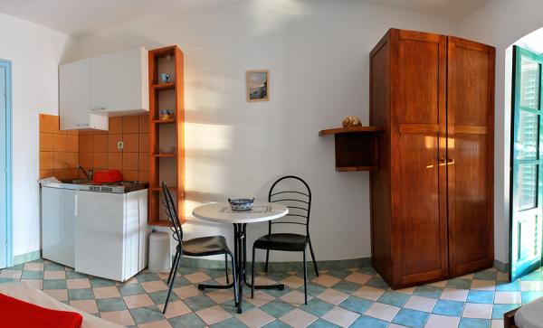 Kompletno opremljeni apartmani u kamenoj kući, tradicionalne gradnje. Apartmani su smješteni na samoj plaži, 5 minuta od centra mjesta, trgovine ili restorana. Svaki apartman ima privatnu terasu s pogledom na more. Ukupan broj apartmana je 4, od čega su dva studio apartmana 3 0, jedan apartman 3 0, te jedan apartman 2 2.