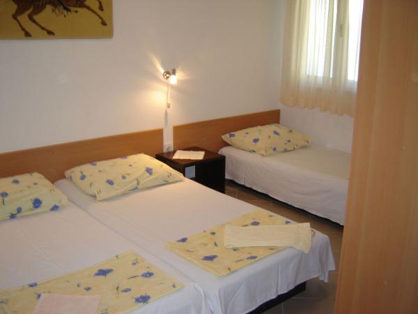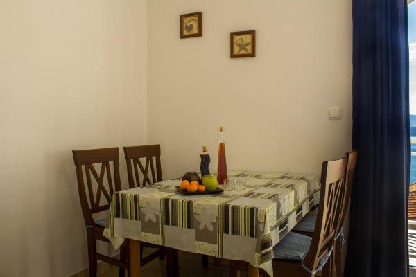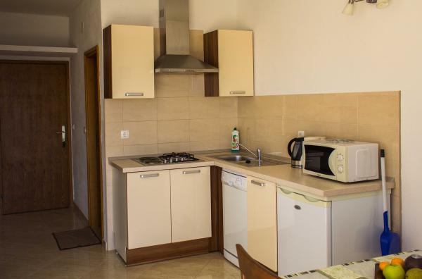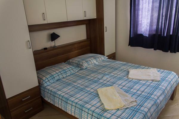 Pročitaj više Smještajne jediniceU cijenu je uključeno korištenje apartmana sa svom opremom (ručnici, posteljina, kuhinjski pribor), parkirno mjesto za jedno auto po apartmanu, bežični internet te klimatizacija. Za potvrdu rezervacije potrebno je uplatiti akontaciju od 30% od ukupne rezervacije, a ostatak isti dan po dolasku. Check-in: 14:00h. Check-out: 10:00h. Po dogovoru je moguć dolazak i prije 14:00h. Boravišna taksa iznosi 1€ euro po osobi na dan. Djeca do 12 godina ne plaćaju boravišnu taksu. Po dolasku u apartman postoji mogućnost da zatražimo sigurnosni depozit od 100€ koji se vraća zadnji dan boravka ukoliko nije bilo oštećenja u apartmanu. Mali kućni ljubimci dopušteni uz nadoplatu od 10€ po danu. Za više informacija obratite nam se putem kontakt forme.