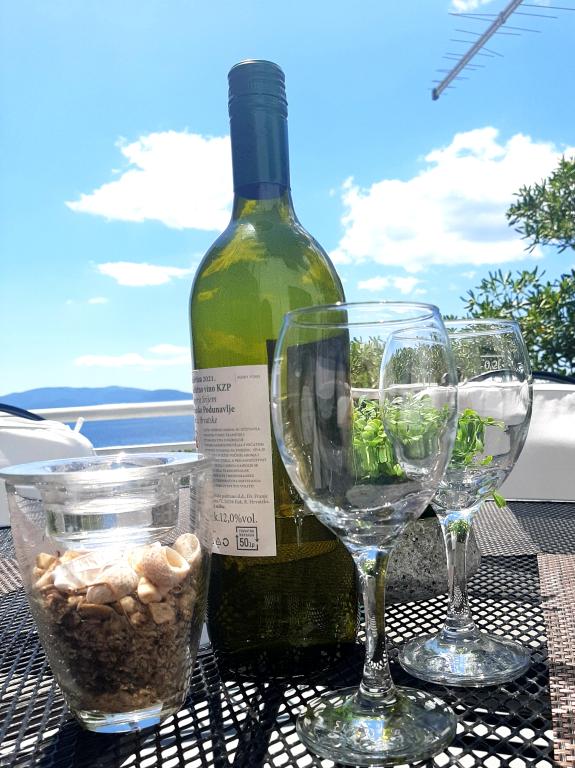 Preporučam apartman svim srcem ovo mjesto i ovi ljudi su nas jednostavno oduševili. Pogled s prozora koji oduzima dah, topla dobrodošlica domaćina uz vino i rakiju. Mjesto je jednostavno savršeno ako volite mir i tišinu, au isto vrijeme blizinu kafića ili sladoleda. besprijekorno čiste prostrane sobe, atmosfera kao kod kuće. Da ne spominjem ukusnu ribu koju smo dobili od vlasnika na rastanku... jednostavno fino. Već sitno brojimo do sljedeće godine.....sigurno se vraćamo.