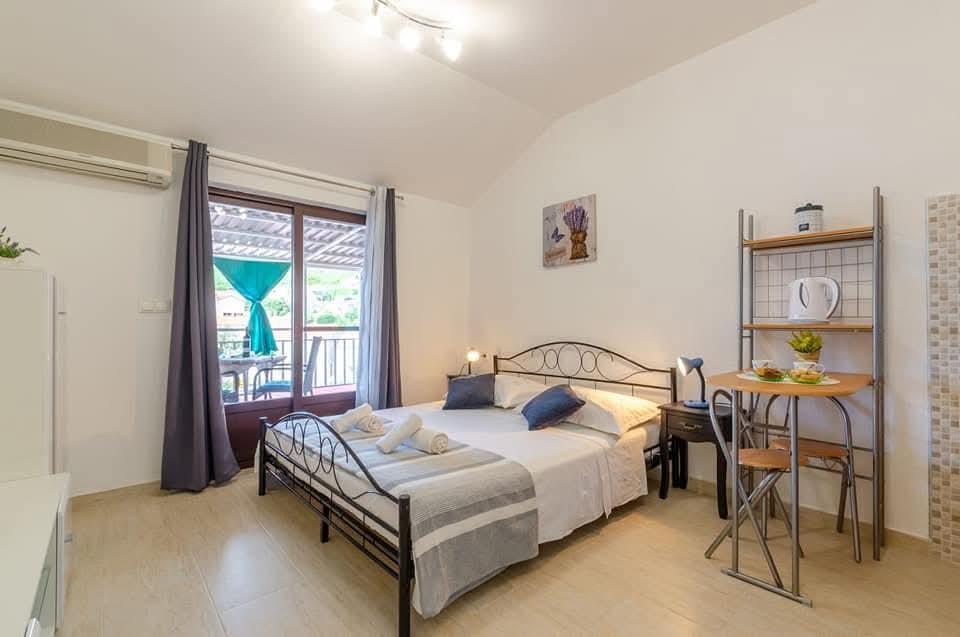 Apartmani Marija nalaze se u mirnom predjelu otoka Korčule, u Brni. Smješteni su u prvom redu do mora. Objekt se nalazi 5 minuta hoda do centra. U blizini objekta nalaze se supermarket, pizzeria i turistički ured. Betonska plaža nalazi se 10 m od objekta, a pješčana plaža nalazi se 1000 m udaljeno od objekta. Sve smještajne jedinice su klimatizirane, uključujuči TV s kabelskim i satelitskim programima. Gostima su ponuđeni besplatni bežični internet, te zajednički roštilj. U blizini samog objekta nalazi se privatan parking manje površine, međutim 50 m od objekta nalazi se javni parking. Svaka jedinica obuhvaća opremljenu kuhinju, kupaonicu s tušem i ostalim toaletnim potrepštinama među kojima je i sušilo za kosu. Svaka jedinica ima maleno dvorište i balkon sa izvrsnim pogledom na sami centar Brne, kao najljepšeg i najmirnijeg mjesta otoka Korčule.