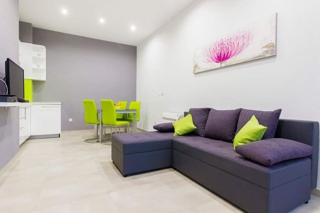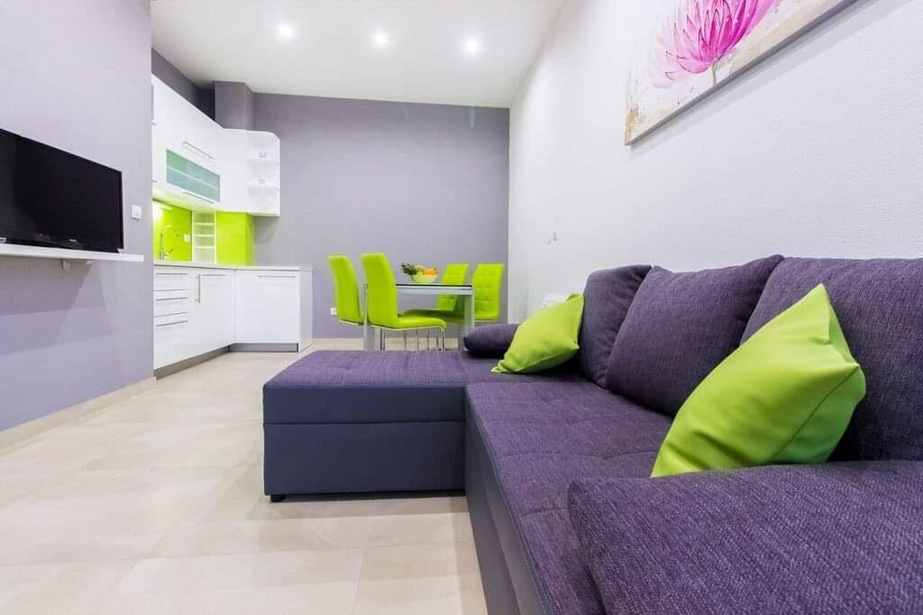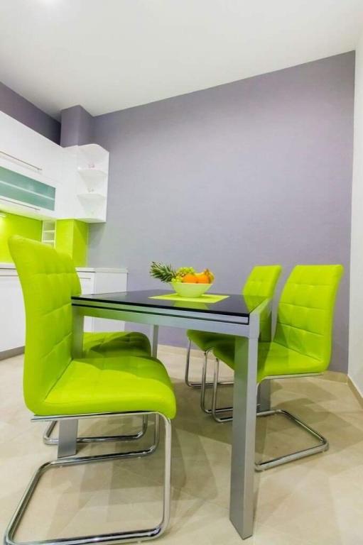 Apartman se nalazi u mirnom predjelu mjesta.Deset minuta hoda do centra.Plaza je minut hoda od apartmana.Ima vanjski prostor za sjedenje.