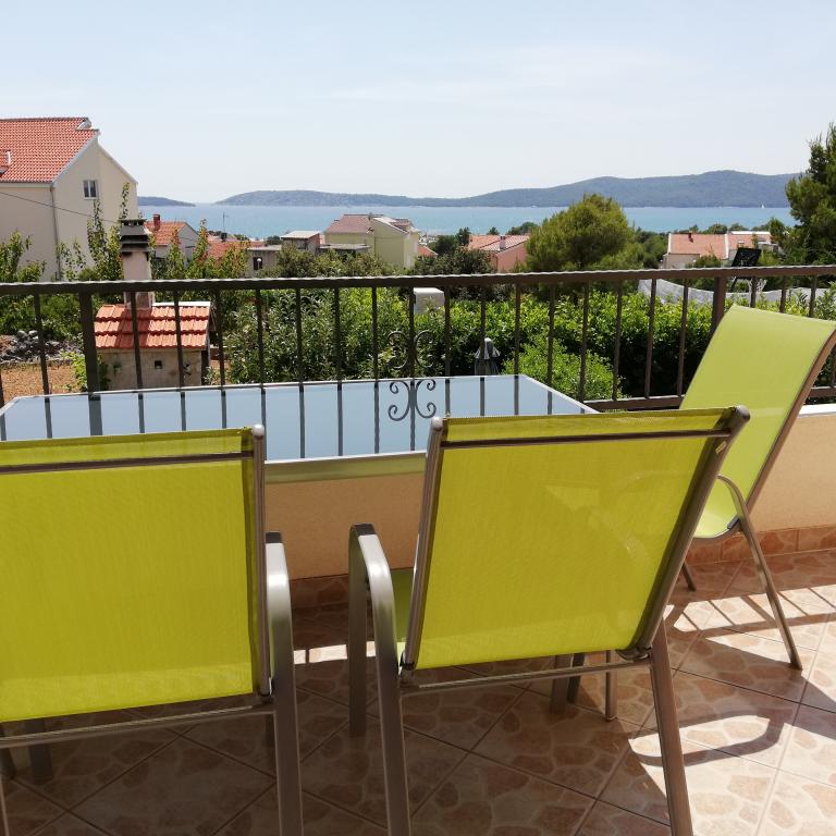 Apartman se nalazi u sklopu obiteljske kuće. Kompletno opremljen sastoji se od:kuhinja, dnevna soba, soba i kupaona. S terase ima pogled na more i obližnje otoke. Kuća se nalazi 5 minuta hoda do plaže, 10 minuta do centra grada Šibenika...